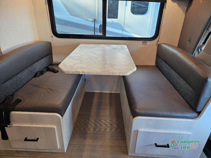 42" x 68" booth dinette easily converts into an additional sleeping area
