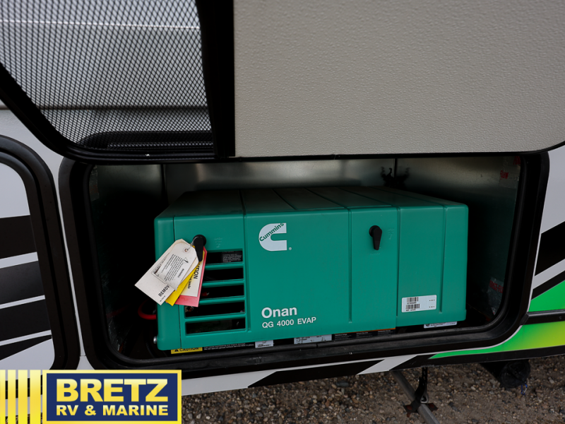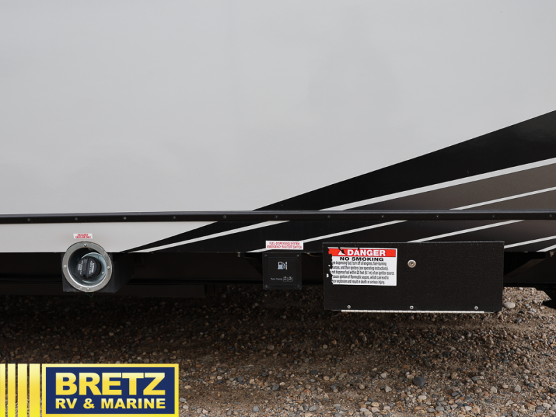 There is plenty of room for you and your toys in this toy hauler with a 15' 1" garage! You'll appreciate the 40-gallon fuel station to keep your toys ready to go, and the exterior shower will come in handy after kicking up some mud. Inside, your crew can relax on the sofa or on the two lounge chairs, plus there is an electric bed with dinette below that will be great for additional sleeping space and meal times. You and your spouse will love the front private bedroom with its queen bed slide and two wardrobes for all your things. This unit also has the option to make the sofa a slide out sofa if you're looking for a little more interior space!