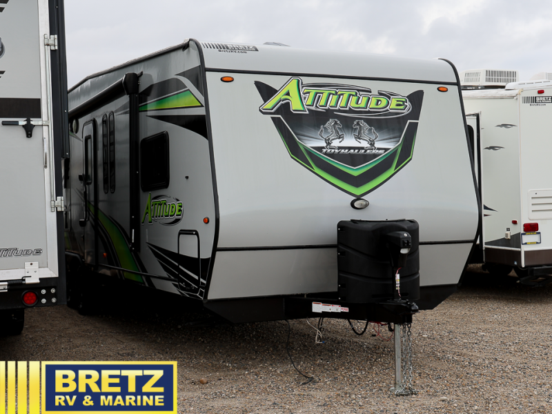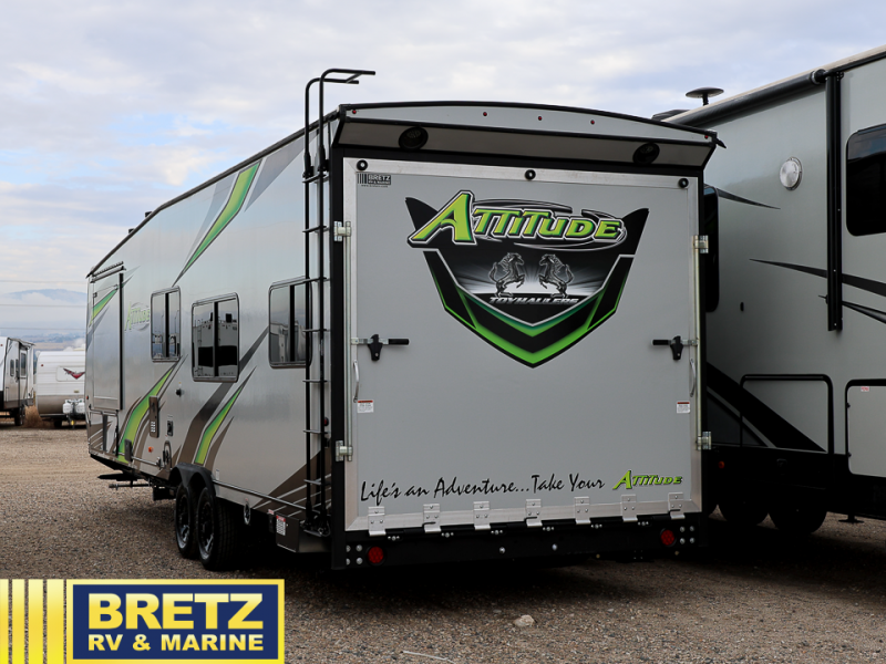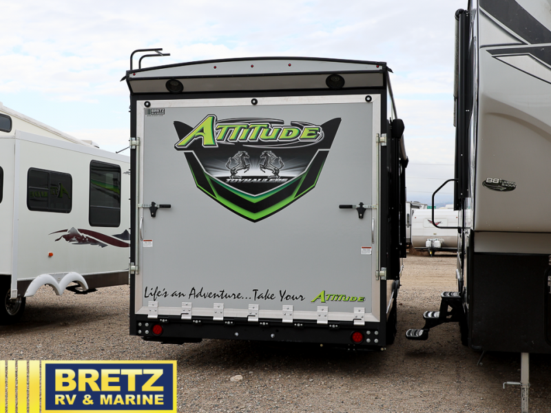 You can bring your favorite off-road toys in any one of these Eclipse Attitude Pro-Lite toy haulers! The exterior consists of a powder-coated chassis and rear high clearance stabilizer jacks. Plus, there is an exterior shower to keep the mud outside where it belongs and a HD digital antenna with park cable hookup. Arrive safely to each destination with the heavy-duty axles with Zerk fittings and self-adjusting brakes. Inside, there is Top Stitch deluxe furniture to sit on, a large double-door refrigerator to keep your beverages cold, and dimmable LED lighting for you to see clearly whether day or night. There is even an AM/FM/BT/DVD stereo with exterior speakers for you to crank up the tunes. Find the model that best fits your needs today!