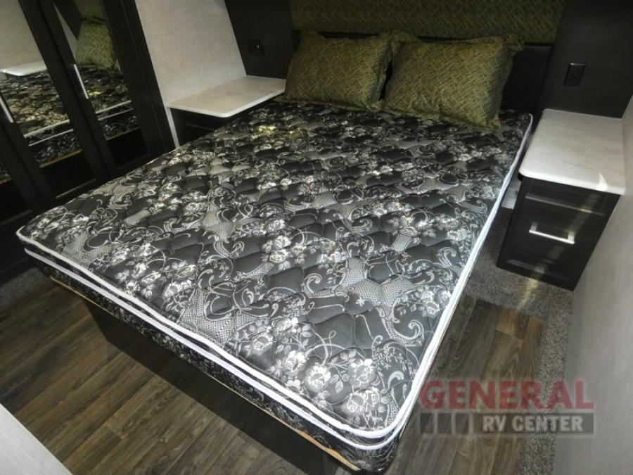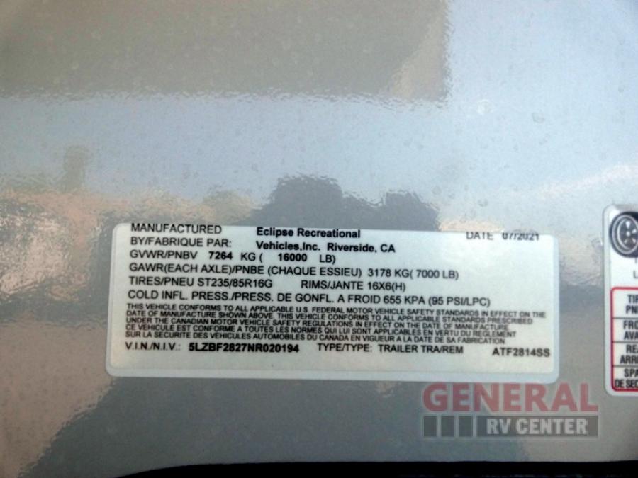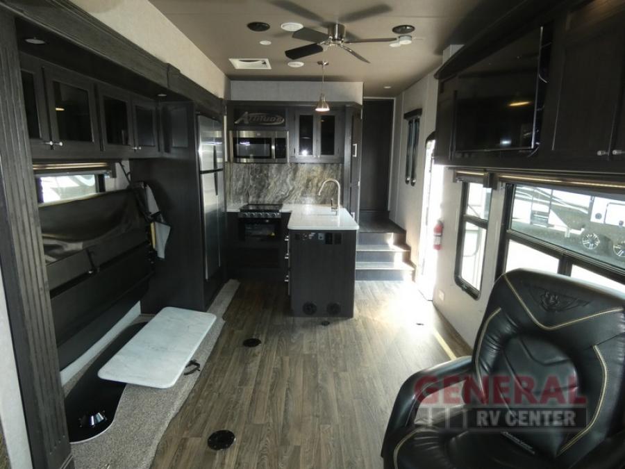 With each Eclipse Attitude Wide Lite toy hauler you begin with a powder coated chassis with laminated, aluminum framed fiberglass sidewalls and fiberglass caps with the front cap having an LED light, and a decked walk-on roof. The 100 AMP lithium LiFePO4 battery/210 watt solar panel, the 40 gallon fuel station, and the 4.0K Onan generator with transfer switch will keep everything up and running when you venture off-grid. The Hi Rez LED lights, the curbside under glow LED lighting and the Hi Def exterior graphics offer the attitude you are looking for! Make your selection today!