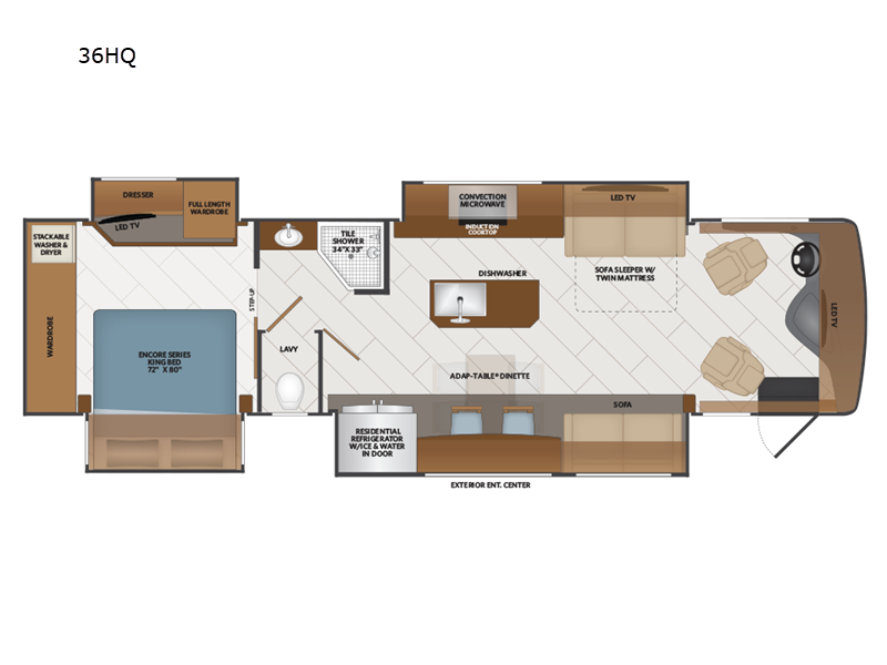 Picture yourself behind the wheel of a powerful diesel-pusher built to take you wherever you dream. The 2022 Discovery 36HQ brings serious presence and comfort: four slide-outs give you expansive living space; a king bed rear suite lets you sleep like royalty; and premium touches like a residential refrigerator and generous storage mean you don’t lose the comforts of home when you hit the road. With a diesel engine under the hood and a chassis engineered for long trips and heavy loads, this coach says “let’s roll” with confidence.