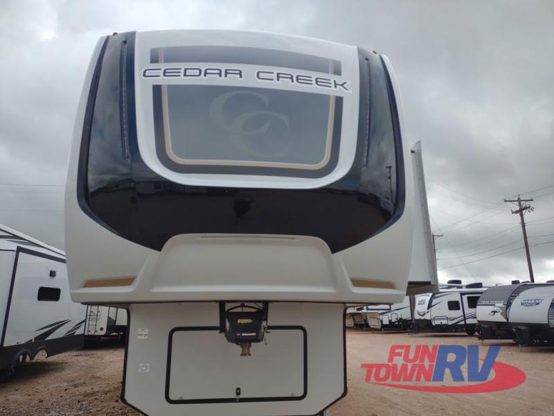You will have peace of mind camping with any one of these Forest River Cedar Creek fifth wheels or fifth wheel toy haulers! Their aluminum superstructure, high gloss gelcoat exterior, and Dexter heavy duty axles with E-Z lube hubs will outlast all of your adventures. The Silaprene bonded sidewalls resist UV, heat, cold, oils, and highway chemicals with a bond that grows stronger with age while resisting delamination too. With the Vegatouch panel and Firefly dimmer switches, you can have total control of your unit in the palm of your hand. The exterior full docking station has multi-function tank levers, black tank flush, 12V battery disconnect, and an outside shower to keep the dirt where it belongs. The congoleum flooring throughout not only makes you feel right at home, but is also easy to clean. Come find the right model for you today!