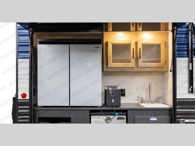 Your larger family will love spending weekends away with this Cherokee Grey Wolf travel trailer as their home away from home. This model offers lots of sleeping space with three bunk beds in the rear private bunkhouse. In the front, there is a master suite with a wardrobe beside RV king bed, and it even has private access to the dual-entry bath. The two entry doors will make accessing the trailer easy for everyone, and you will appreciate the abundant storage throughout this unit including large overhead cabinets, a spacious pantry, and numerous outside storage compartments for all of your outdoor gear. There's even an outside bar & grill!
