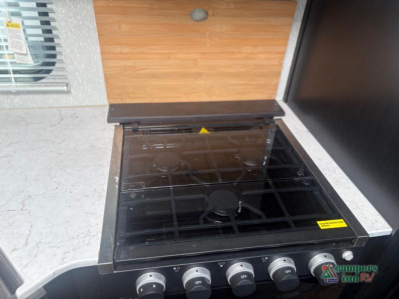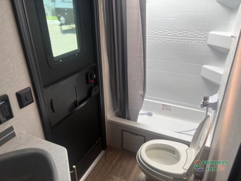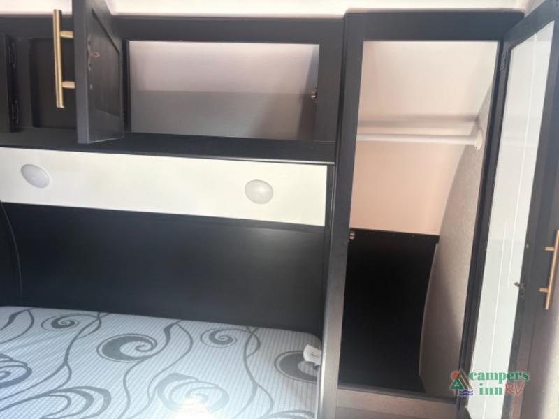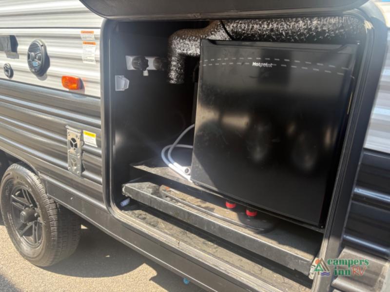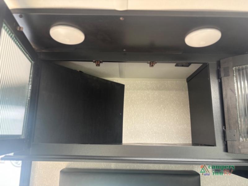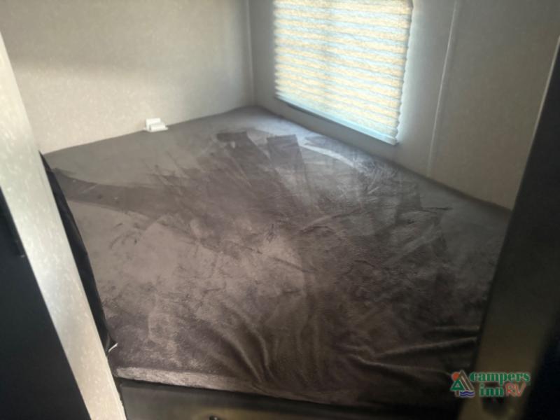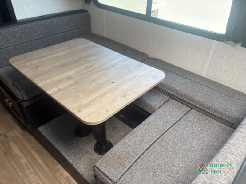 Come on inside this Cherokee Grey Wolf travel trailer and experience the convenience of a smooth flow of traffic in and out with two entry doors. The rear door leads into a full bath which is great for accessibility when outside and when you need to use the bathroom. Once inside, you will notice the large U-shaped dinette and the sofa which sit on the slide and create a spacious footprint for moving about, as well as great places to play games and socialize with your friends and family. A walk-in pantry provides plenty of storage allowing you to stock up on your favorite snacks and dry goods for your family adventure. At night, there is sleeping space for everyone between the double-size bunks and the queen-size bed, plus the furniture.