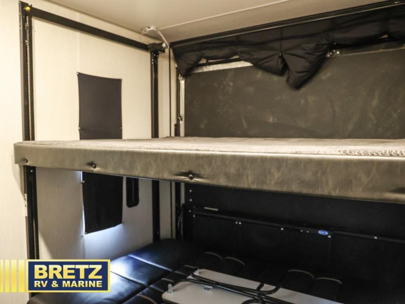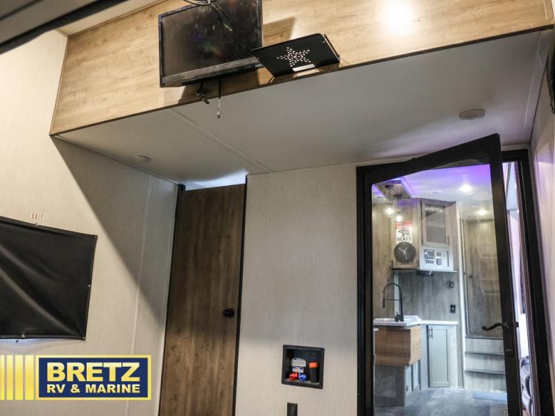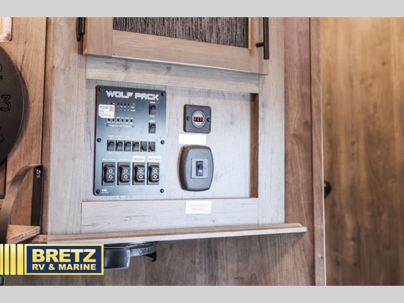 Run with the pack in any one of these Forest River Cherokee Wolf Pack toy haulers! They are affordable and versatile with a 102" widebody design to pack in all of the necessary features for a great adventure with your family and toys. The grey high gloss gel exterior will turn heads on the highway and the LED interior/exterior lights will make life easier. An outside shower with hot and cold water helps to keep the mud outside where it belongs. With an external 30 gallon fuel station, you won't have to worry about your toys being low on fuel. The Platinum package adds extra conveniences like a ramp door patio deck railing system, a Happijac bed lift system, and an industrial rubber garage floor on enclosed garage models. Come find the perfect model for you today!