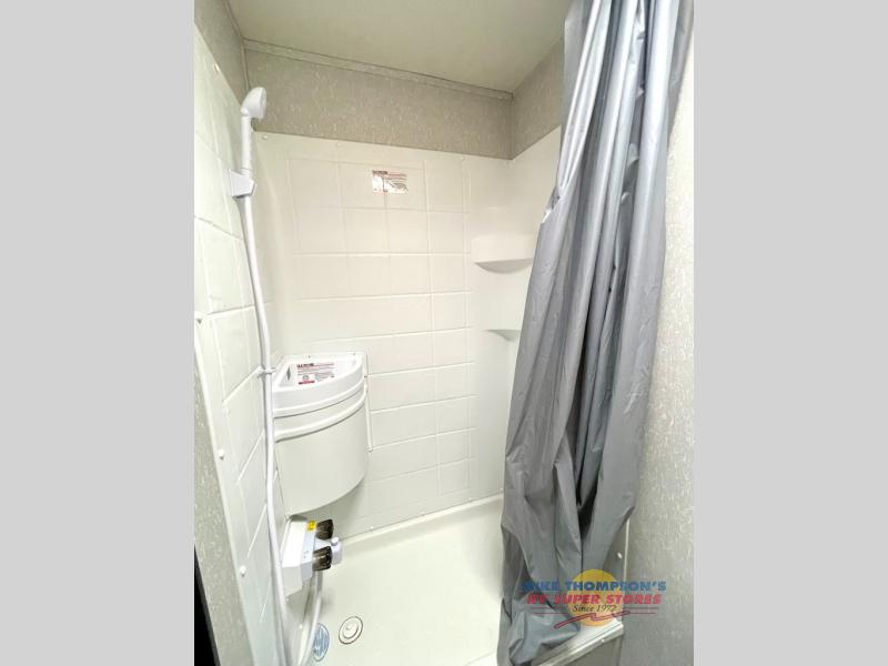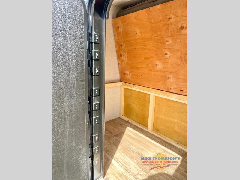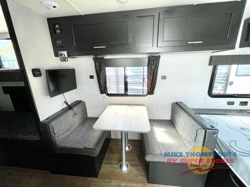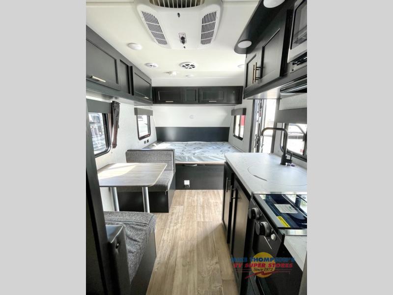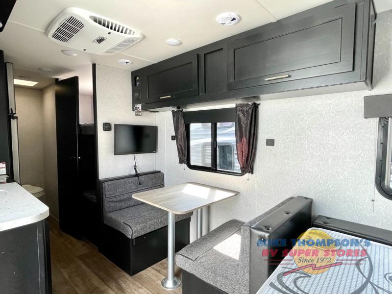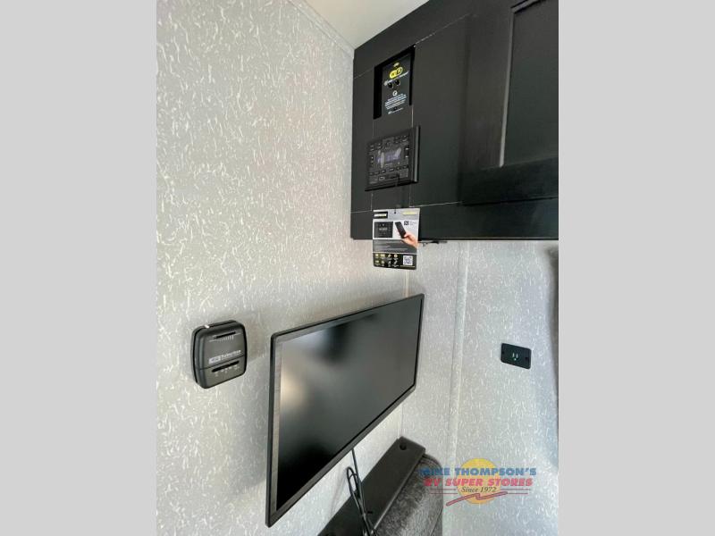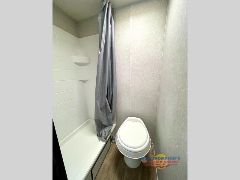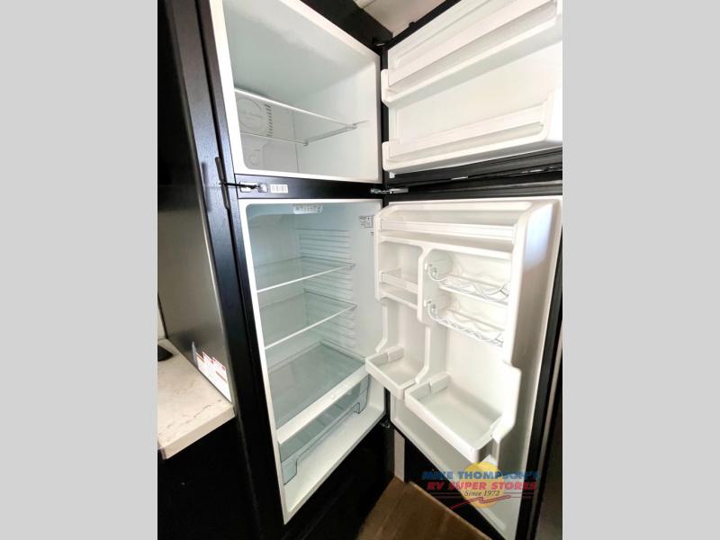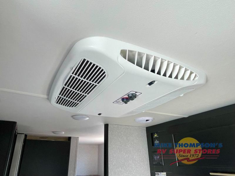 The whole family can sleep comfortably in this travel trailer! It has a set of bunk beds for the kids to sleep on with a TV mount location for extra entertainment, and you can sleep comfortably on the front queen bed with overhead cabinets and a shelf. There is even an exterior pack and play door that accesses the storage space under the bottom bunk. The chef will enjoy preparing their best home cooked meals either indoors with the high output cooktop or at the outside mini kitchen while staying protected by the 12' power awning, plus you have an outside TV mount location for added entertainment while you cook!