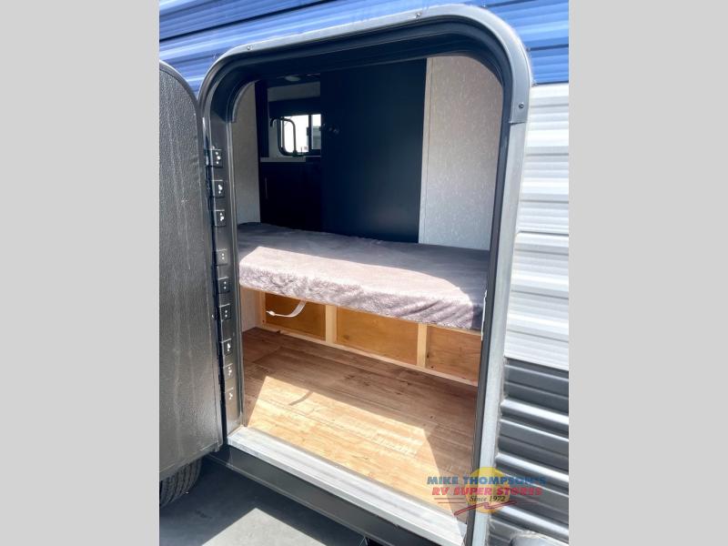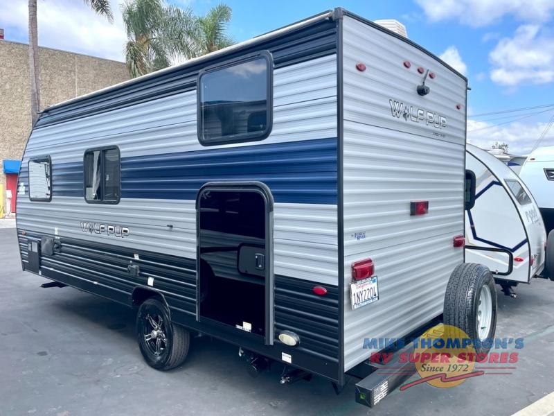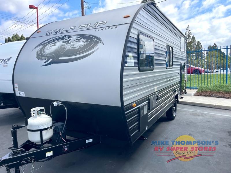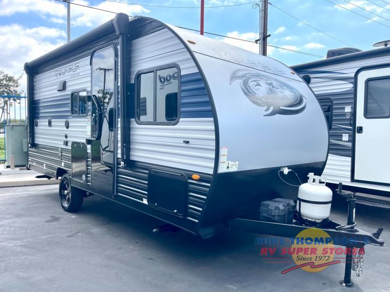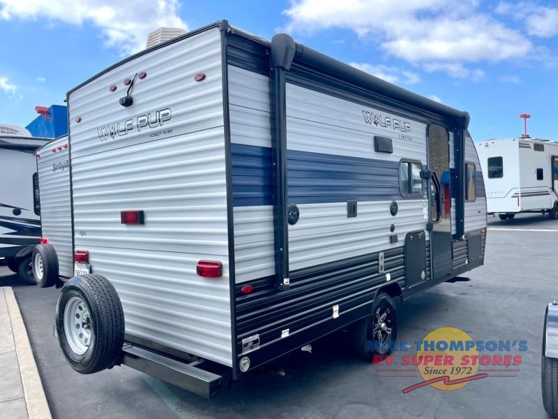 Each one of these Forest River Cherokee Wolf Pup travel trailers and toy haulers are lightweight and easy to tow! They are fully self contained with ample tank capacities, an abundance of storage space, and filled with at home amenities. The aerodynamic smooth radius front profile, the Power Gear frame technology, and the space saver rail design make them easier to maneuver. You will also appreciate the seamless roofing membrane with heat reflectivity to keep the sun from making your unit a hot box. The tongue and groove plywood flooring will hold up for years of fun and the USB charging stations help to keep your electronics at 100% while you're away. Come find the best model for you today!