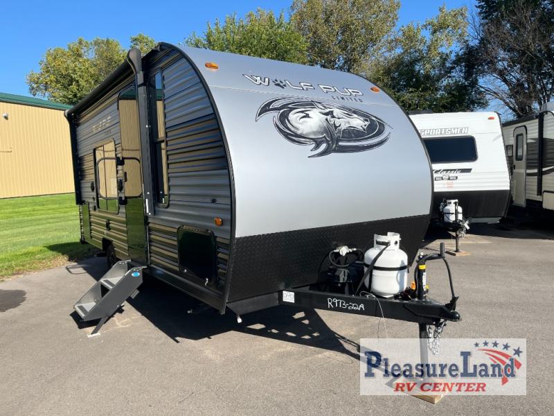 Each one of these Forest River Cherokee Wolf Pup travel trailers and toy haulers are lightweight and easy to tow! They are fully self contained with ample tank capacities, an abundance of storage space, and filled with at home amenities. The aerodynamic smooth radius front profile, the Power Gear frame technology, and the space saver rail design make them easier to maneuver. You will also appreciate the seamless roofing membrane with heat reflectivity to keep the sun from making your unit a hot box. The tongue and groove plywood flooring will hold up for years of fun and the USB charging stations help to keep your electronics at 100% while you're away. Come find the best model for you today!