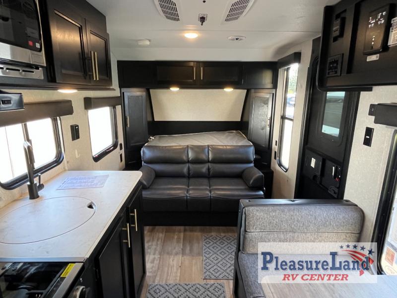 You will experience versatile living in this travel trailer with the Cherokee Sleep System! It lets you easily convert the front queen bed into a comfortable sofa to sit on during the day. Freshen up each morning in the full rear bathroom with the tub/shower and large sink with cabinet storage below it and mirror above it. Fill your bellies with the perishables stored in the 11 cu. ft. Cannon high efficiency refrigerator and cook them on the high output cooktop then enjoy them at the booth dinette. You could even prepare a meal while breathing in some fresh air at the outside mini kitchen while staying protected by the 12' power awning. Easily store all of your outdoor gear in the outside storage area too!
