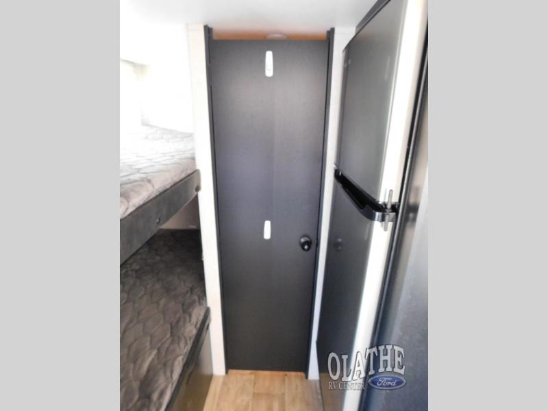 Get away with the family for a fun vacation in this travel trailer! The kiddos can sleep on the set of bunk beds and you can sleep on the front queen bed with a pillowtop mattress and TV mount at the foot of the bed. You could even transform the U-shaped dinette slide into an extra sleeping space for another friend or two to tag along. Everyone can stay squeaky clean with the tub/shower in the rear corner bathroom, and their bellies full with the high output cooktop and 11 cu. ft. Cannon high efficiency refrigerator. There is plenty of storage throughout the inside and outside with the front outside storage area and the storage plus door with access to the storage space underneath the lower bunk bed. Plus, an outside mini kitchen to cook meals in the great outdoors and an outside TV mount for added entertainment!