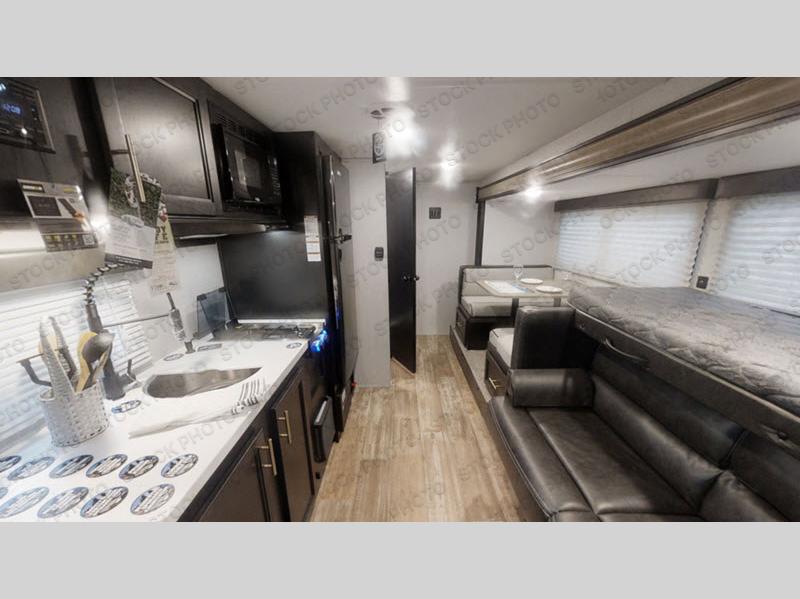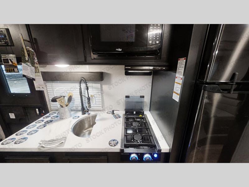 Start taking memorable trips in this travel trailer! It features a front queen bed with a pillowtop mattress to lay your head on at night, and a rear corner bathroom with a tub/shower to freshen up in each morning. You can prepare your best home cooked meals with the high output cooktop, the 11 cu. ft. Cannon high efficiency refrigerator, and even the high output microwave then enjoy them comfortably at the booth dinette. Relax each night on the sofa while you read a book or watch a movie with the TV mount location nearby, plus there is a hidden bunk above the sofa for added sleeping space. You even have an outside TV mount location, an outside mini kitchen, and outside storage to bring along all of your outdoor gear!