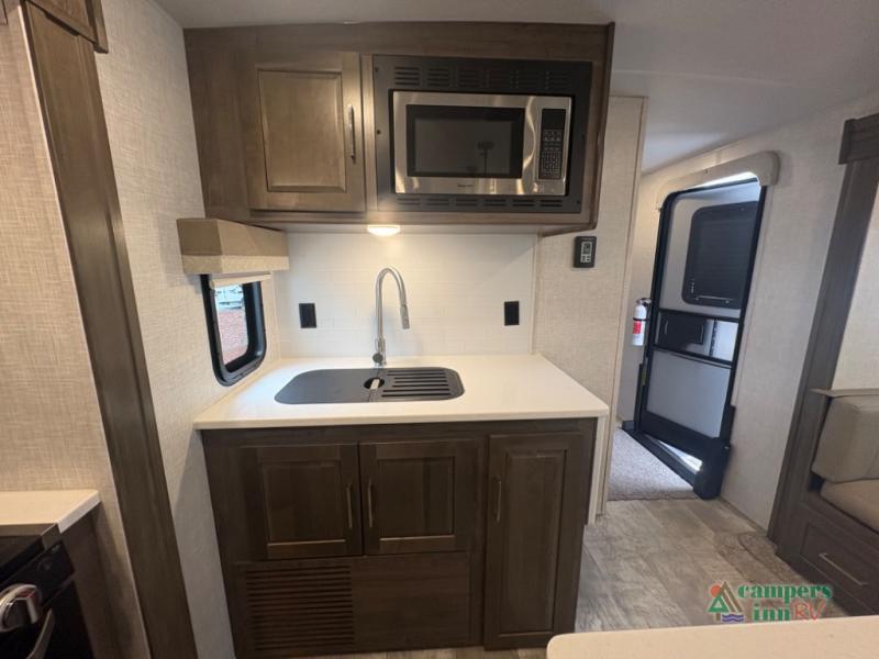 With any Flagstaff Super Lite travel trailer by Forest River the towing features include the TST tire pressure monitor system with a monitor providing safety on the road, Easy Lube axles and Nev-R adjust brakes, a power tongue jack for easy setup, and rear observation camera prep. Each is built with 6 sided aluminum framed side walls, end wall, front, floor and a roof, a plywood tongue and groove subfloor, electronically controlled heated holding tanks and an enclosed underbelly allowing you to travel during any season. The interior offers a Water-Pur filtration system, a multi-zone stereo with DVD, CD, AM/FM and Bluetooth control, a Showermiser water saving system, designer bedding and so much more! Choose a lightweight, towable by half-ton pickup truck Flagstaff Super Lite today!