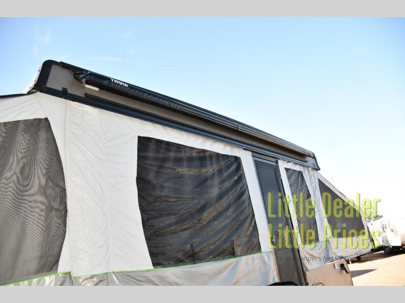 The Flagstaff MAC Series was built to make setup and teardown a breeze, so you can spend more time enjoying the outdoors. With its power roof lift, stabilizer jacks with sand pads, and one-piece screen door, you’ll be ready to relax in minutes. The Vinolon Supreme tenting material is durable and weather-ready, while the ProRac permanent crossbars give you a secure spot to carry bikes, kayaks, or extra gear on top.