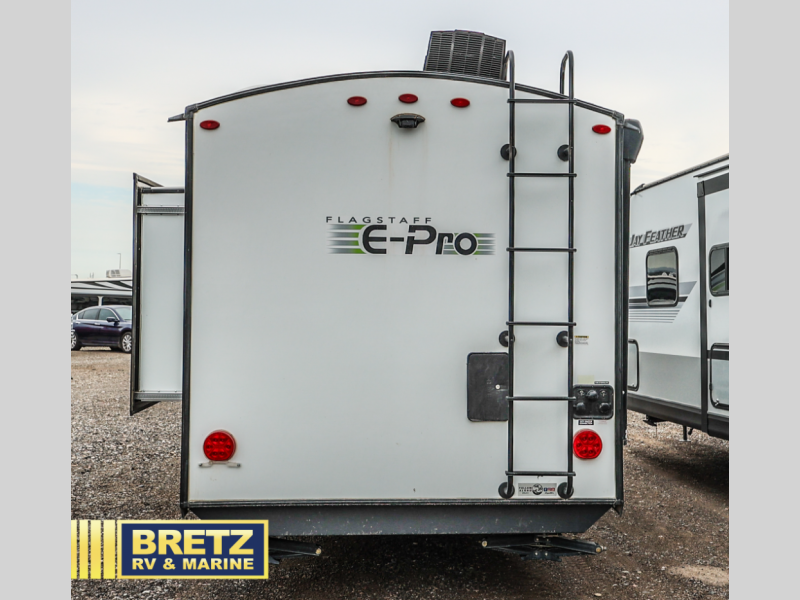 With any Flagstaff E-Pro travel trailer or toy hauler by Forest River, you will experience lightweight towing, style and features that will meet your needs, plus amenities that give you more than you expected! Built with interior and exterior Azdel construction,  tongue and grove plywood flooring, and a vacuum laminated roof and walls, plus torsion axle, Rubber-Ryde suspension, and a tire pressure monitoring system for safety while traveling.  And the 190-watt roof mount solar panel with 1,000-watt inverter will allow you to stay off-grid if you like. The interior offers a comfortable environment with the choice to use the air conditioner or furnace, and an AM/FM stereo with Bluetooth and USB will allow you to listen to your favorite tunes and keep your cell phone charged. Make your selection today!