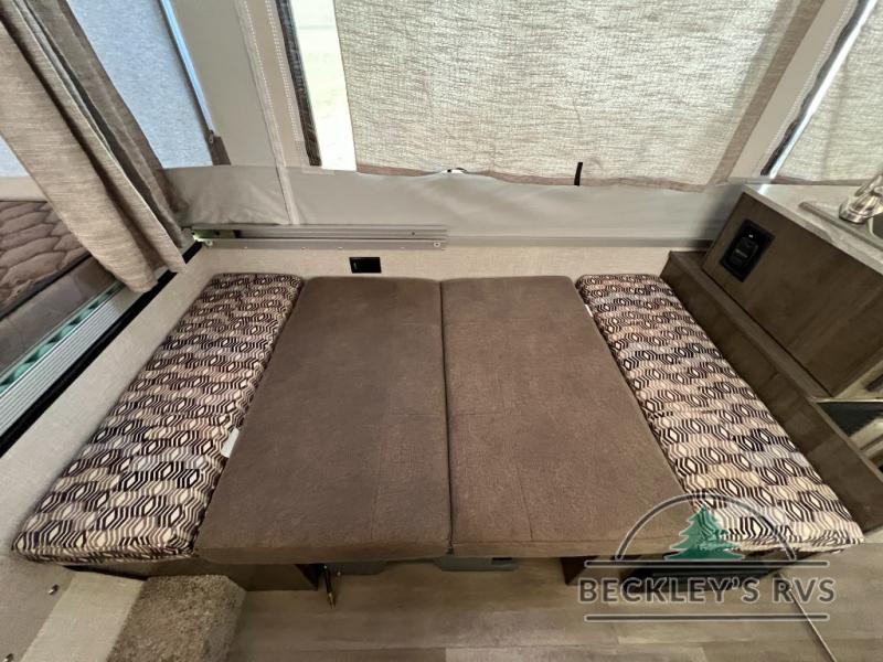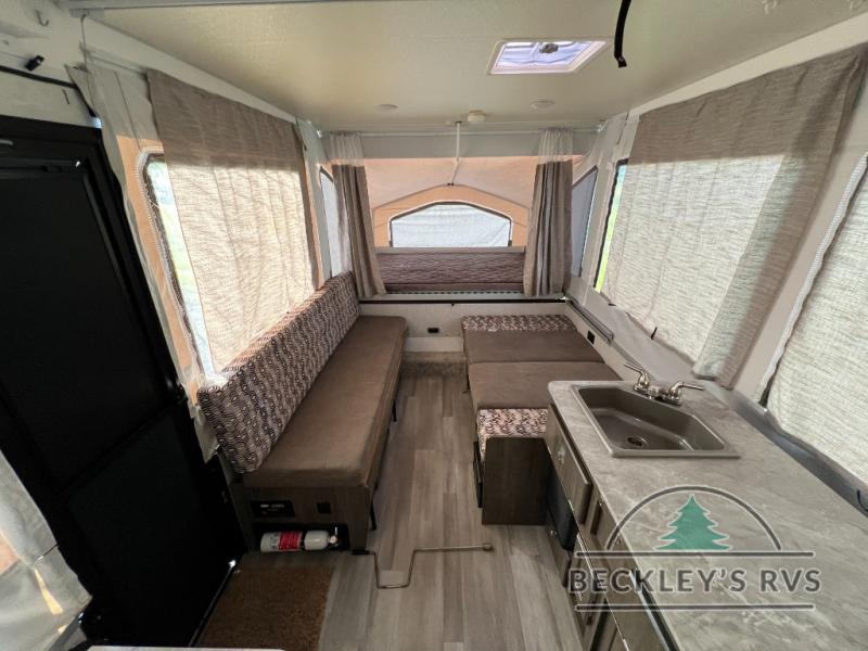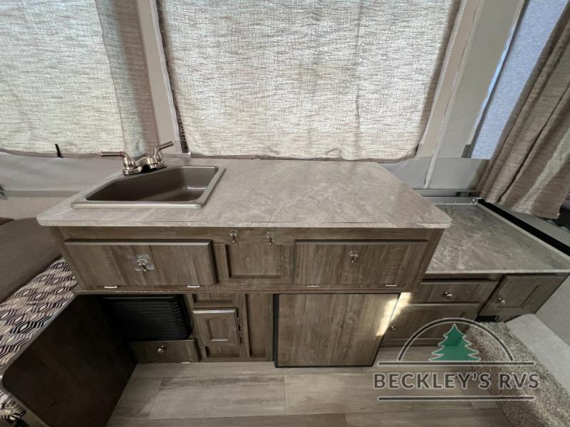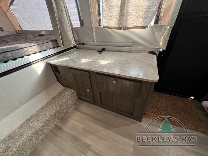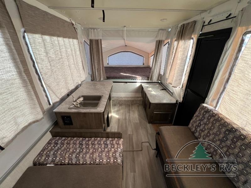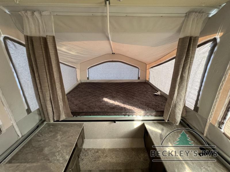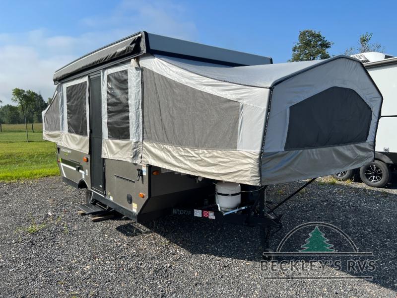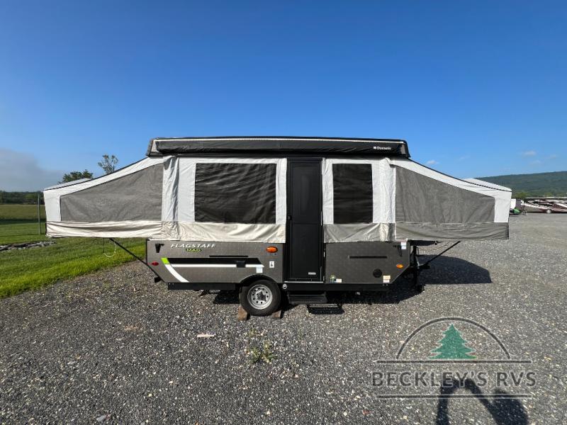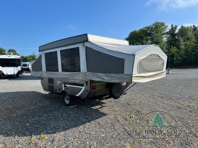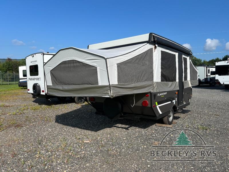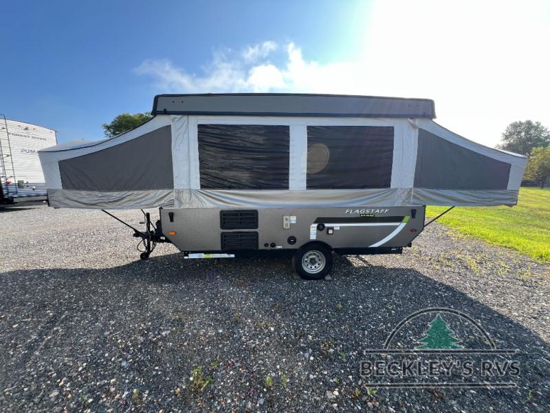 Retire the family tent for one of these Forest River Flagstaff MAC Series folding pop-up campers! They might be light on features, but they don't lack in comfort or quality. Each model comes with a heated mattress on the bunk ends, wood look flooring, and a flip-down galley with storage for dishes and snacks. The Outdoors package and Limited package include handy features like outside griddle to grill juicy burgers while breathing in fresh air and an awning to keep you protected rain or shine. The MAC Series models even come with a power roof lift for added headroom. You can also choose from many options to further customize your trailer, like the optional screen room with privacy panels, the optional low profile roof A/C, and much more!