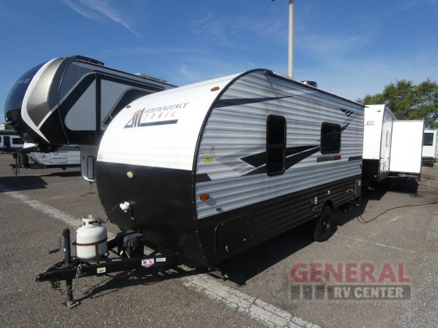 Each one of these Forest River Independence Trail travel trailers are feature packed and ready to go where ever you choose! Blaze through trails with nitro-filled radial tires, Dexter E-Z Lube axles, electric brakes, and a heavy duty tongue jack. The rugged, on-the-go construction consists of a PVC roofing membrane and tinted safety glass windows. Keep your bellies full with a fully equipped kitchen and your spirits high with an AM/FM stereo with two interior speakers and two exterior speakers. Stay protected rain or shine with the oversized power awning, keep your electronics at 100% with the USB ports, and don't worry about tracking mud inside with the hot/cold outside shower. Come find the model that best fits your needs today!