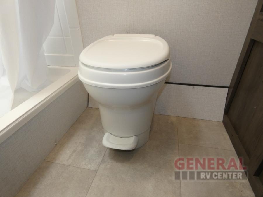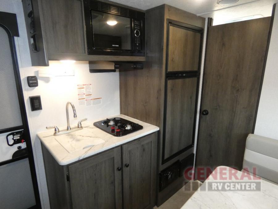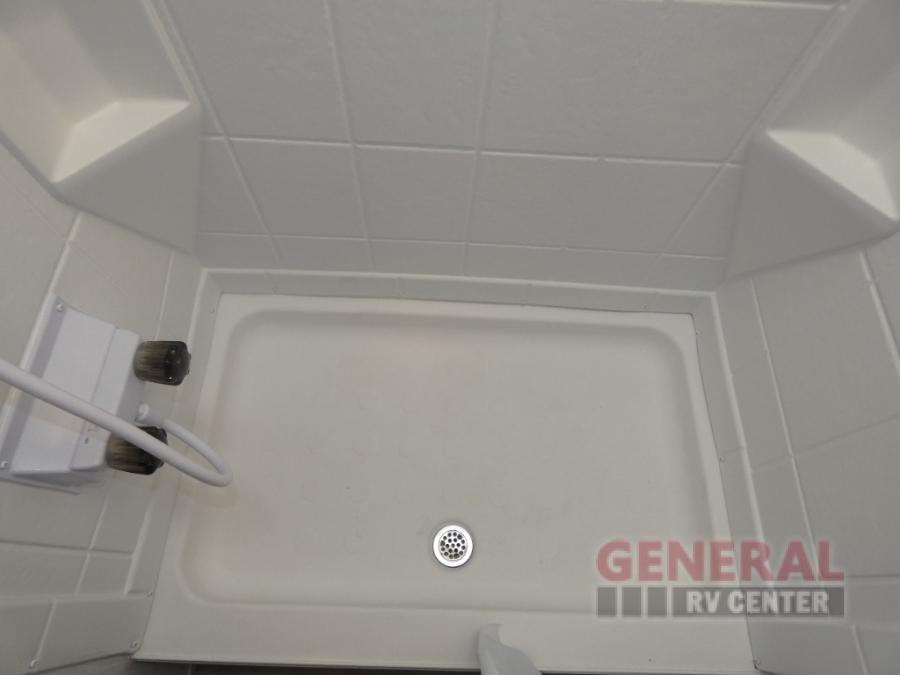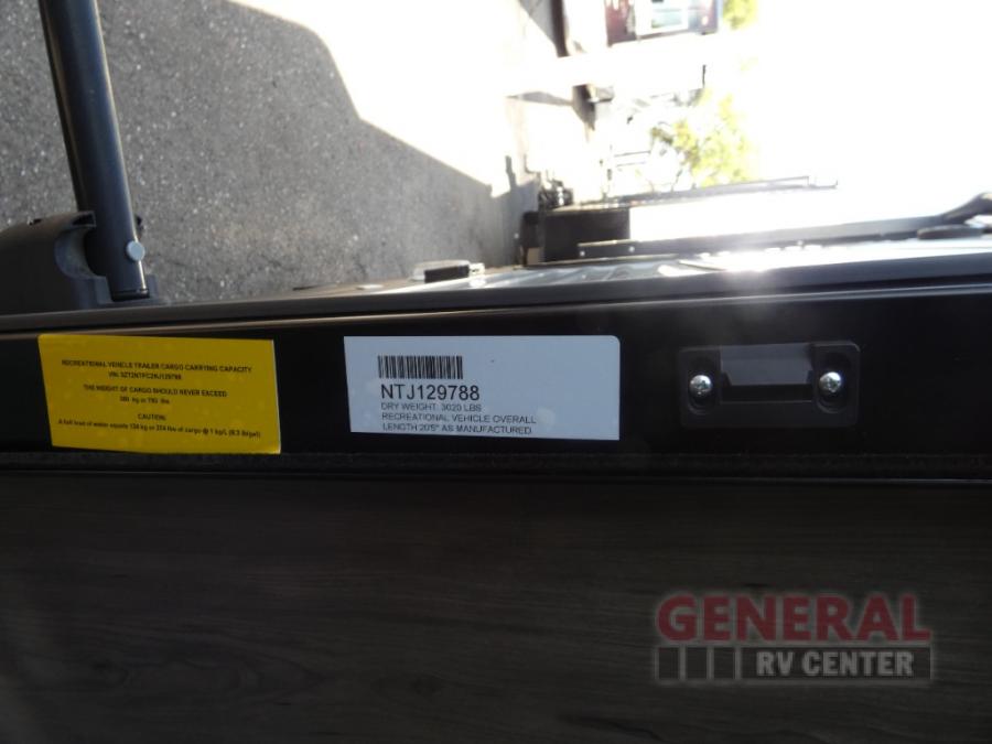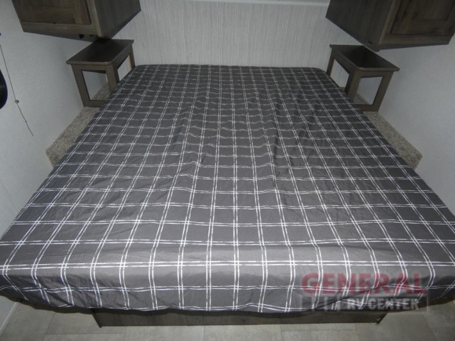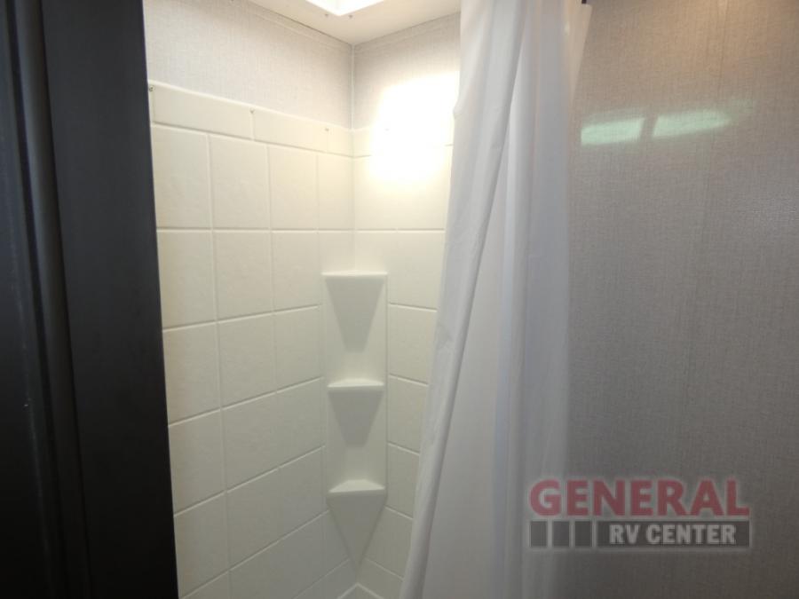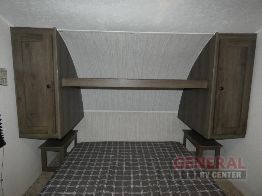 Go camping in this travel trailer at your favorite spot with your favorite person! Get a good night's rest each night on the front 60" x 74" queen bed then grab some eggs from the 7 cu. ft. gas/electric refrigerator and fry them up on the two burner cooktop. Enjoy your meals at the booth dinette and you can even transform it into an extra sleeping space for a guest or two depending on their size. Freshen up each morning in the full rear bathroom with the shower that has a skylight above to bring the outdoors inside. Set up a table and chairs under the 12' power awning to breathe in some fresh air while you relax!