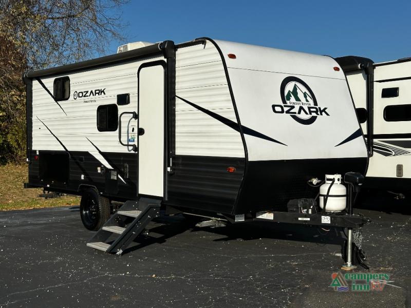 Whatever journey you choose to take, the Forest River Ozark travel trailer or toy hauler will be well prepared to make that journey the best it can be! You'll have a full-length power awning with adjustable legs and LED lights to enhance your evenings spent outside. The friction-hinge entry door won't slam against the side of your trailer as soon as you open it, and the double step plus XL folding grab assist handle will create an easy way to enter your trailer. The class-leading window package will make sure that all of your scenic views are easily seen from the inside of your trailer, and the durable one-piece linoleum flooring ensures that cleaning won't be burdensome.