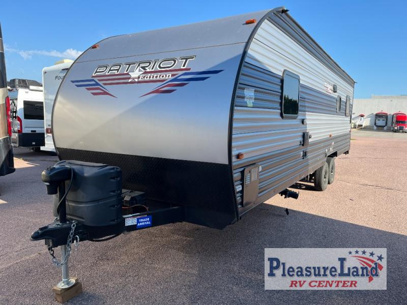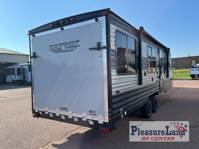 The Forest River Patriot Edition travel trailers and toy haulers have been exclusively crafted for AC Nelsen, and they have many enticing features that will impress you! Each model has a seamless roofing membrane with heat reflectivity and Power Gear frame technology with space-saver rail design. The back-up camera system makes it easy for you to maneuver into tight spaces, and the USB charging stations allow you to keep your equipment powered and ready to go. The power awning will protect you from the rain as you spend your time outdoors, and you can use the outside shower with hot/cold water to rinse off your hands after you create some delicious s'mores.