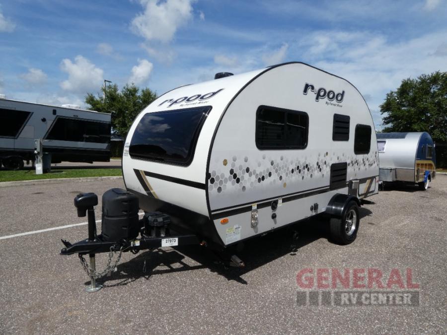 The Forest River R-Pod travel trailer is an excellent choice for lightweight towing and accommodating amenities! There are some enticing inclusions for the R-Pod, like the Azdel composite panels that will completely withstand water damage and the central vacuum system that will make it easy to clean up messes. The R-Pod has the largest refrigerator in its class, and there is also a black glass entrance door that enhances the sleek look of the stylish exterior. The R-Pod has been prepped for a solar panel and a back-up camera, and it also comes with an independent suspension torsion axle for a smooth ride to the campsite.