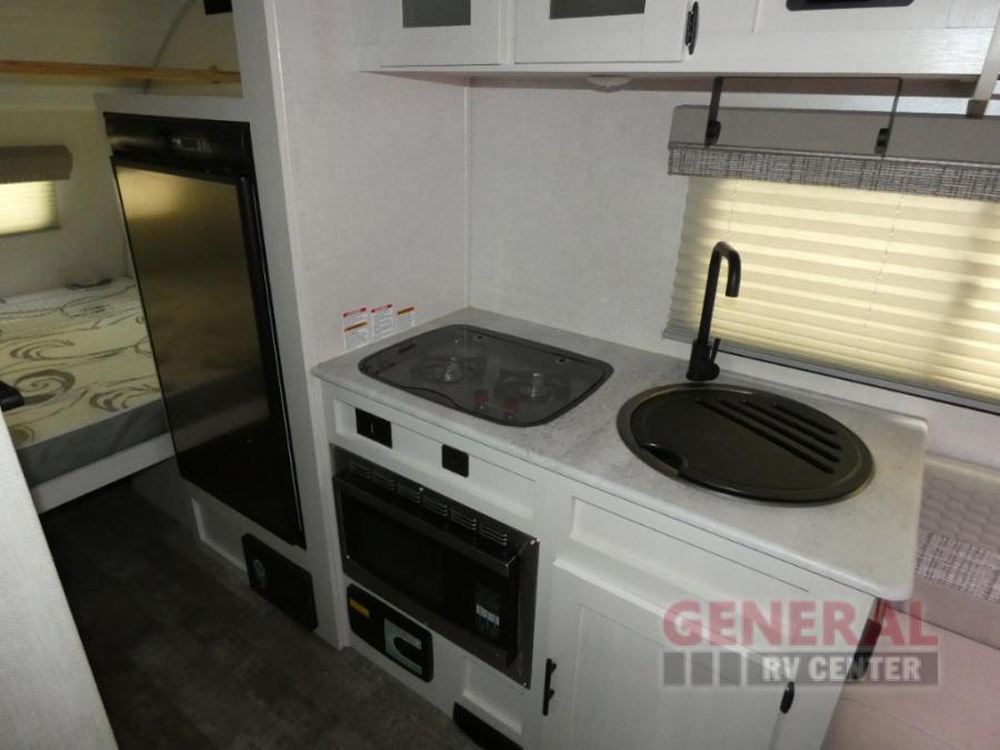 This R-Pod travel trailer by Forest River is perfect for weekend trips or month-long vacations to enjoy the great outdoors with conveniences of home. You can easily sleep three people with a rear RV queen bed and a front dinette folded down for the little ones. This unit also includes an LED TV to enjoy while you're stuck inside on a rainy day, and the cook will have a two-burner cooktop and convection microwave to make meals inside. You will also find a convenient wet bath where you can easily get ready for bed each night.