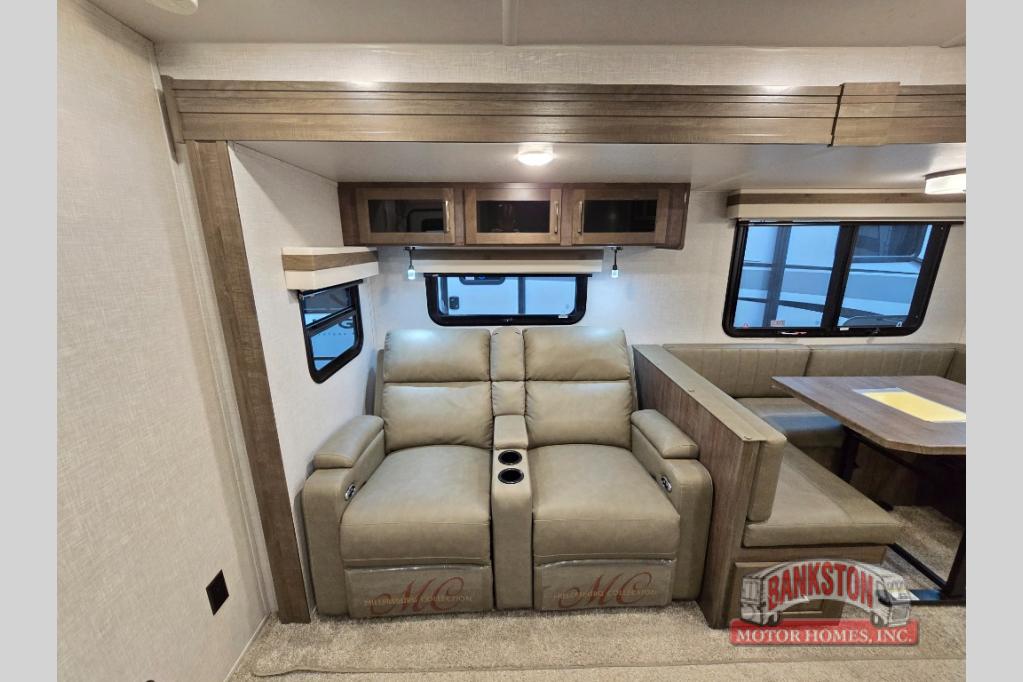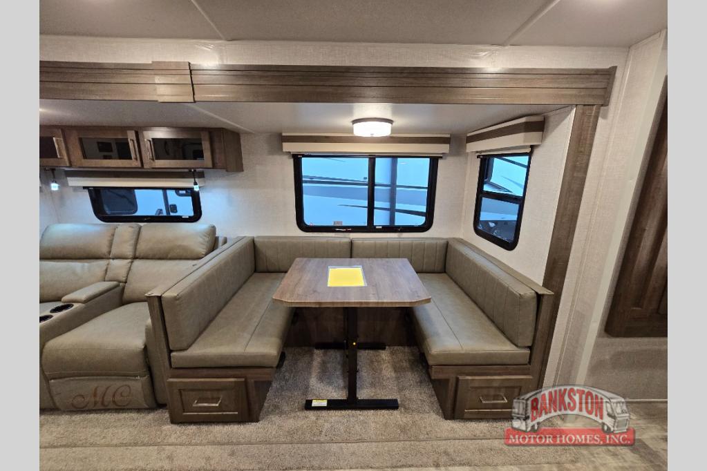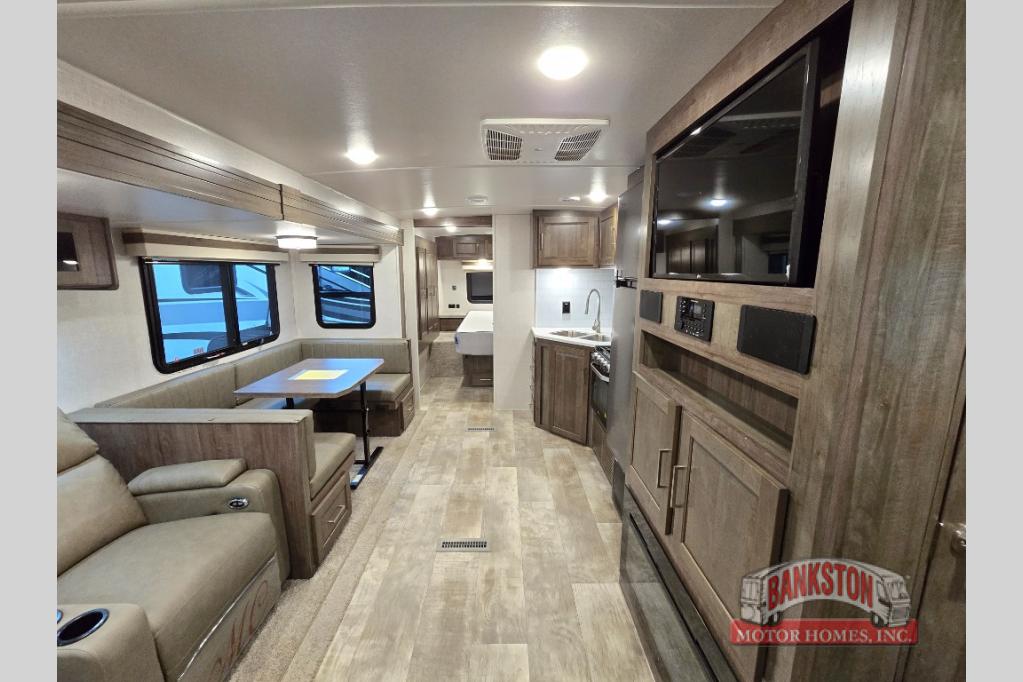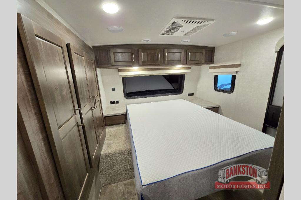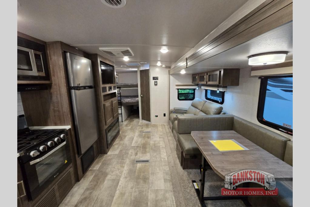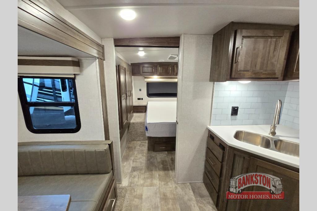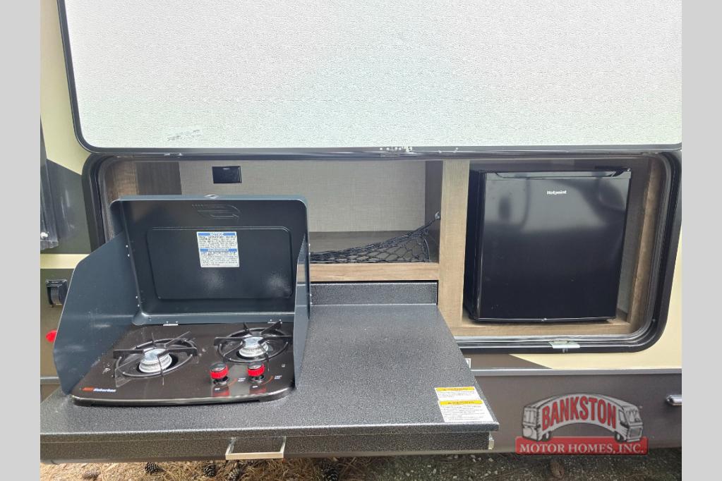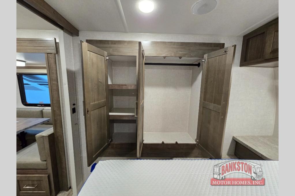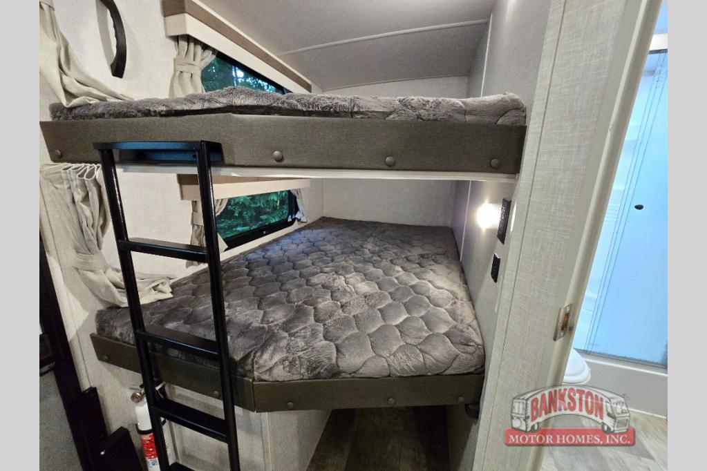 Looking for a trailer that sleeps eight, allows you to cook indoors or outdoors, and offers dual entry for convenience when you travel with a bigger group? This trailer provides for those wants and needs, and offers even more! The outside camp kitchen gives you more choices when feeding the masses along with the outside griddle, and the interior kitchen includes an L-shaped area for the cook to have their own space with full amenities including a counter extension and a walk-in pantry to bring along everything they need. The full bathroom will keep everyone refreshed, and the theater seating along with the U-shaped dinette offer seating inside to enjoy the LED TV and fireplace. There is plenty of storage found throughout the interior, and along the exterior you will find several places to stow your outdoor items including in the drop frame storage.