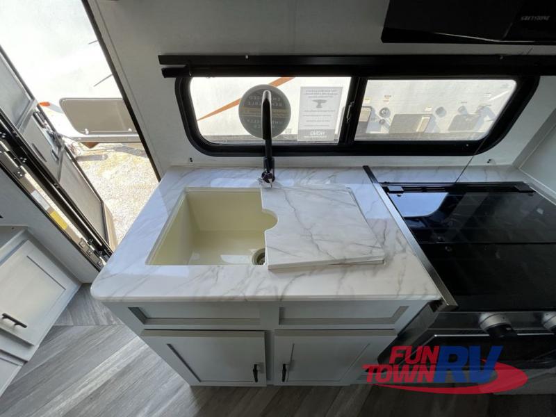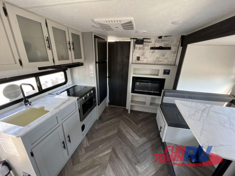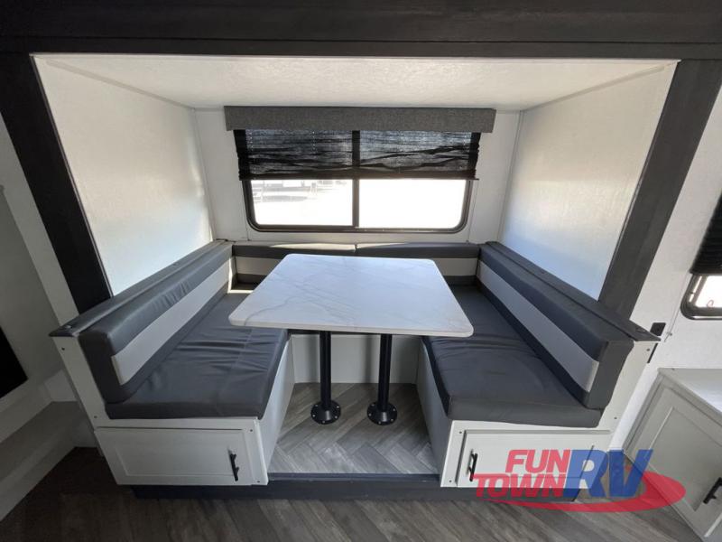 Each one of these Forest River Salem FSX travel trailer and travel trailer toy haulers are fully featured, light weight, and easy to tow making them perfect for a first time or seasoned camper! They are built with a SuperFlex one piece roof, a powder coated I-beam frame, and an aerodynamic front radius profile for better wind resistance. With the largest in class opening panoramic windows, you will have a great view of your beautiful surroundings and enjoy fresh breezes of air throughout. A diamond plate front rock guard will protect your unit from road debris and the Tuffcoat scratch resistant exterior paint helps to keep any dings or bumps from scratching it. The Best-In-Class package comes with an AccessiBelly enclosed underbelly to keep your units vitals safe through every season, a XL folding grab assist handle to safely enter and exit, and an upgraded appliance package to prepare your best meals. Come find the model that best fits your needs today!