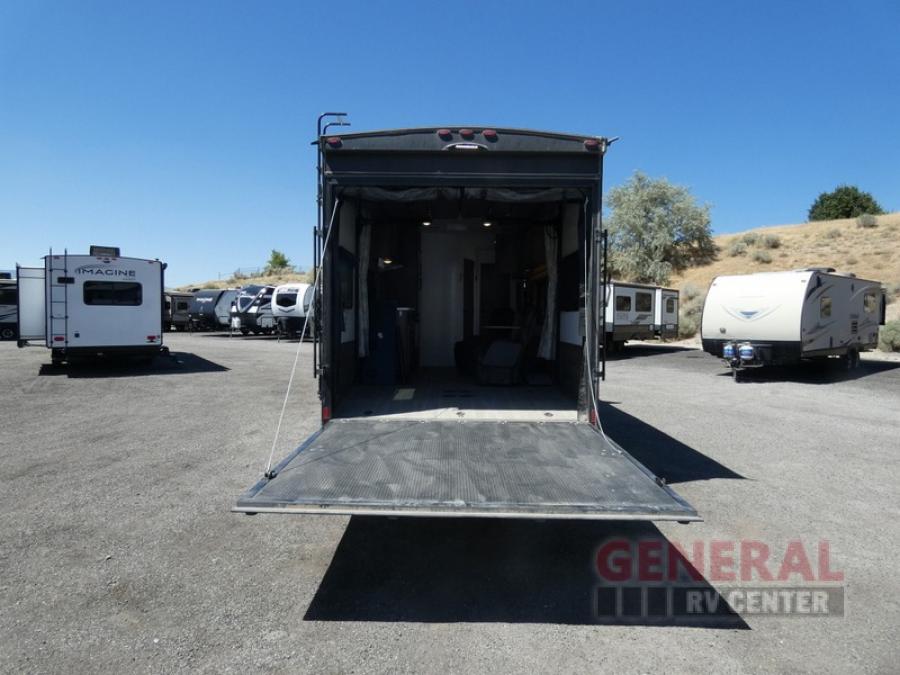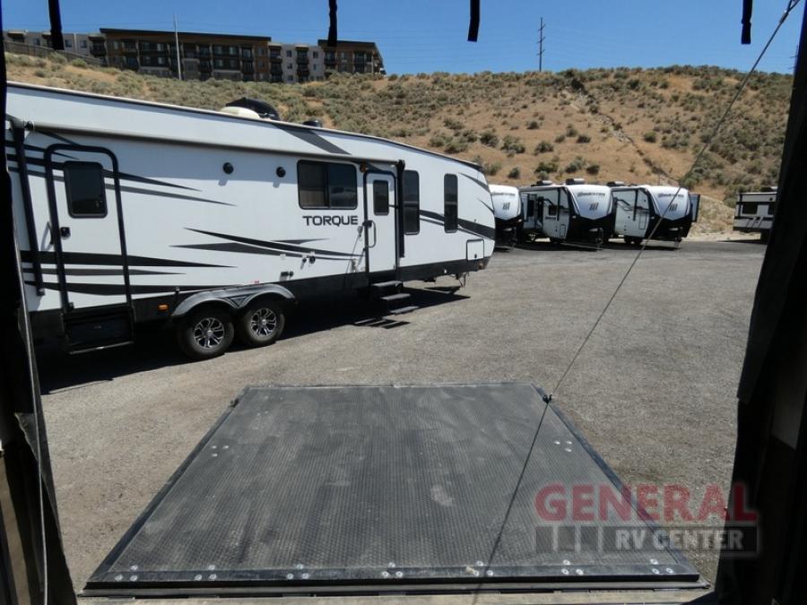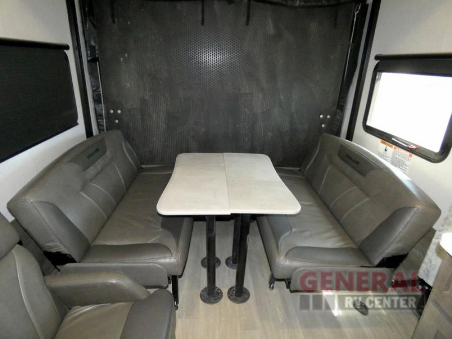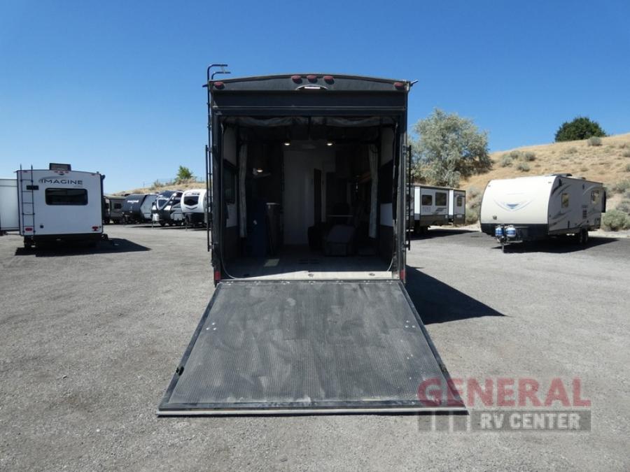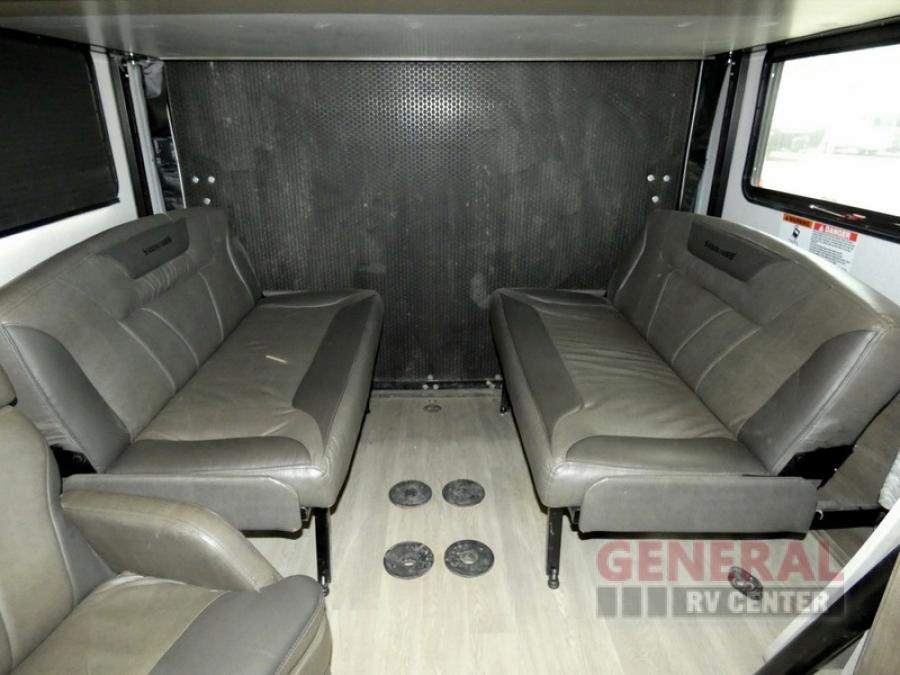 If you and your spouse enjoy hitting the trails, then this Sandstorm toy hauler with a fiberglass exterior is for you! You can easily load and unload your off-road toys with the 3,000 lb. ramp door, and the tie-downs are mounted into steel so that you can be sure your toys will arrive safely. When you're ready to wind down your nights, you can head into the front private bedroom and relax on the queen-size bed or entertain a few guests at the electric pass-through dinette which can also transform into an extra sleeping space.