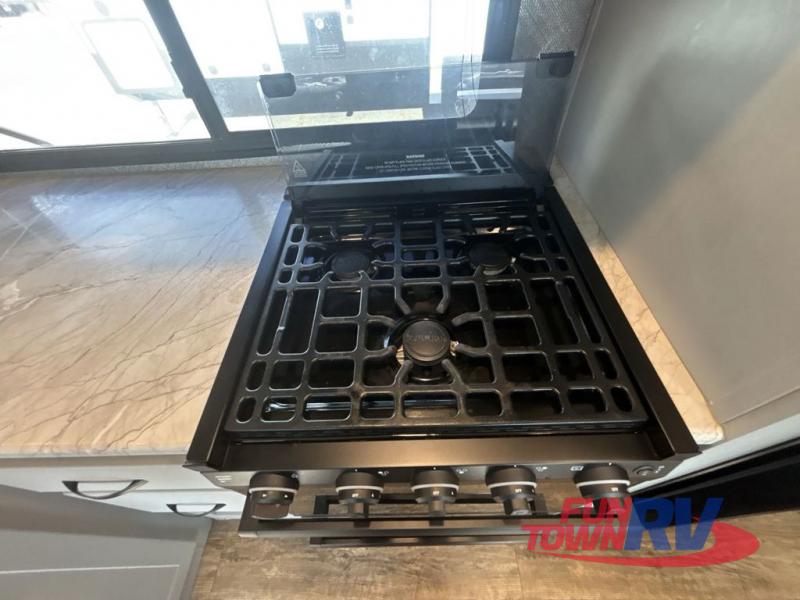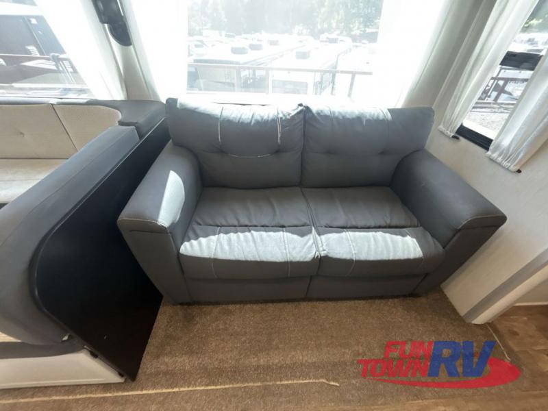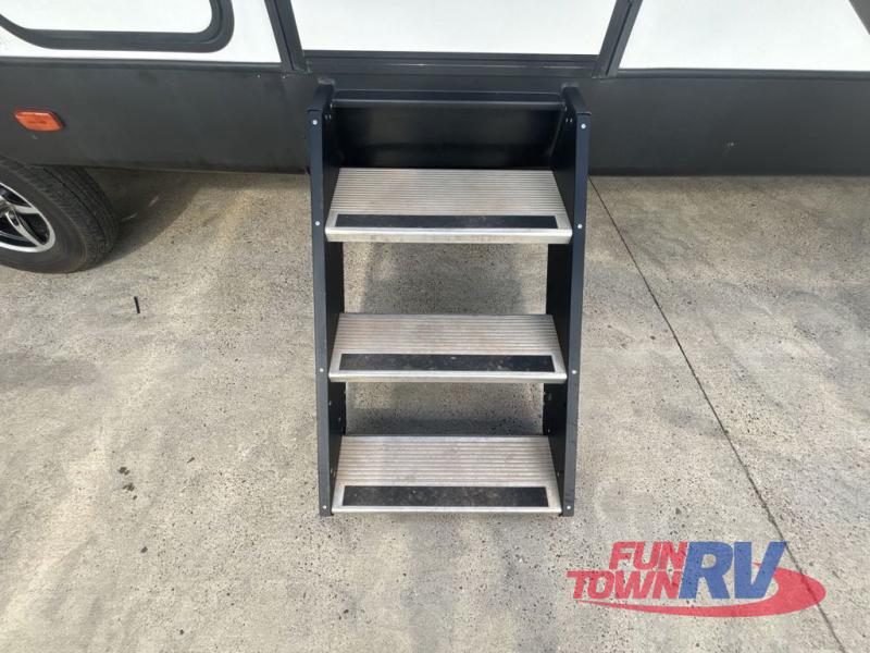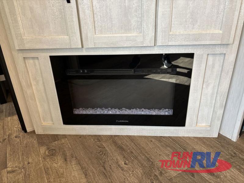 Are you looking to upgrade your RV to a trailer with more space and more features? Look no further than this Vibe that can sleep ten people each night. The kids are sure to claim the double-size bunks to themselves, while the adults take the front private bedroom with the queen bed. You will find even more sleeping space on the U-shaped dinette and sleeper sofa within the large slide out. After a day outdoors at the lake, get cleaned up in the full bath that includes a 40" x 30" walk-in shower and its own exterior entry door for convenience. There is so much more to love about this model, like the fireplace and entertainment center, the oversized panoramic windows, and the large pass-through storage for all your gear!