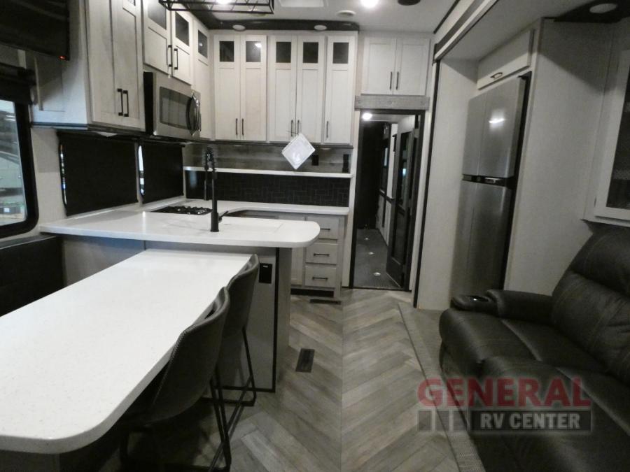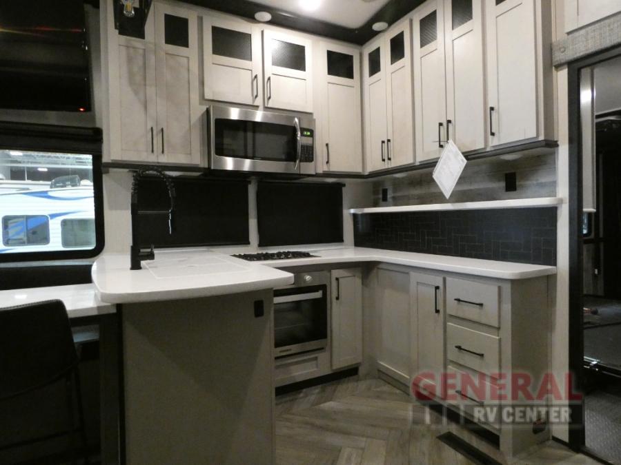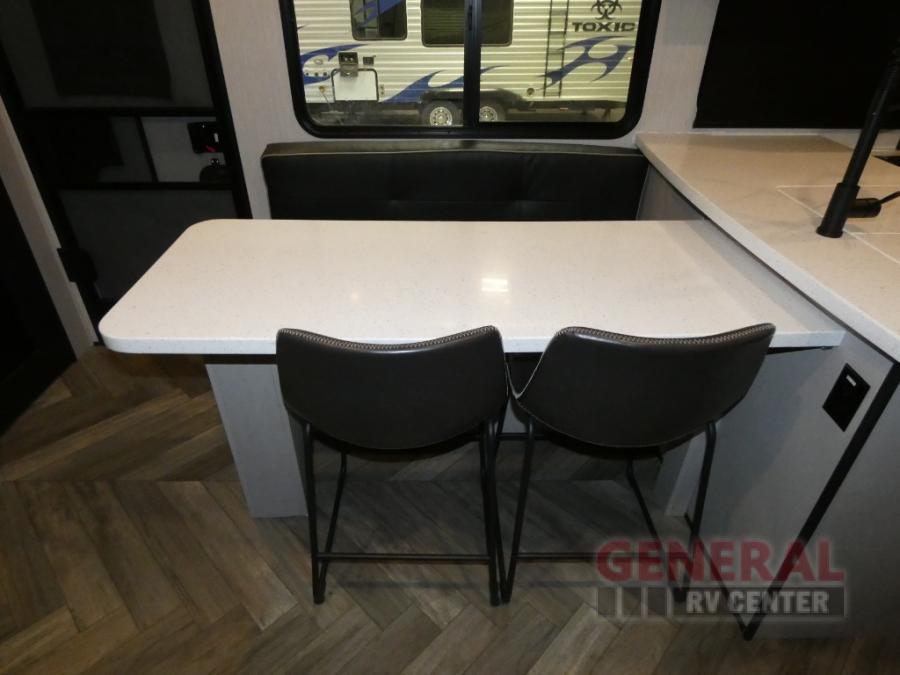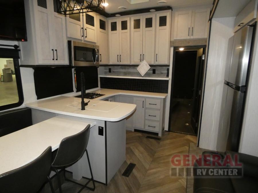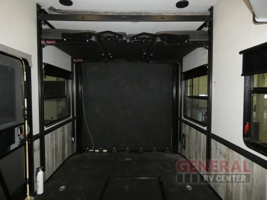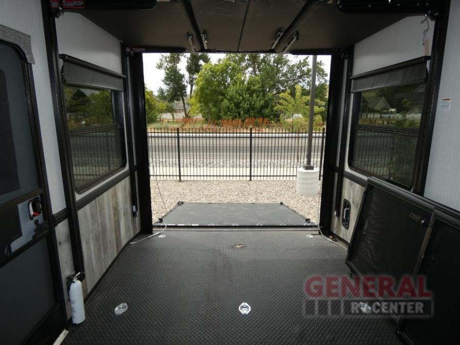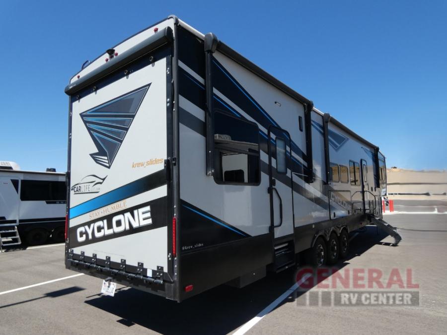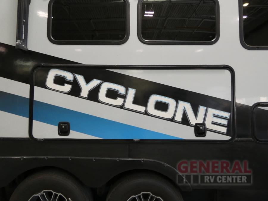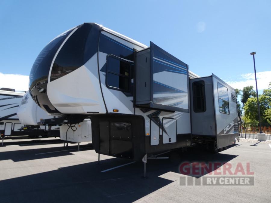 Each one of these Heartland Cyclone fifth wheel toy haulers offer luxury, toy hauler capacity, and a residential look and feel! You will find comfort and convenience from the inside out starting with the "Swift Space" pull out dresser work station and the culinary kitchen work space to the patent pending Stor-Mor exterior storage with three-sided access to the basement with 30% more capacity for your gear. The adjustable sunlight blackout shades make it easy for you to take an afternoon nap so you can re-charge and get back to riding the trails. These units are strong, lightweight, weather and temperature resistant, and easy to haul with the Azdel laminated sidewalls and composite substrate. An ultimate outdoor kitchen combination is just waiting for you to grill up your best burgers while taking in your beautiful scenery!
