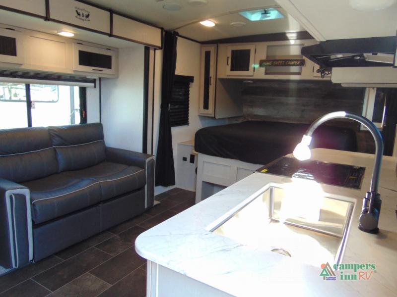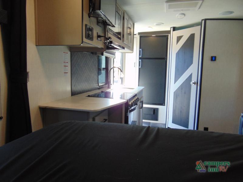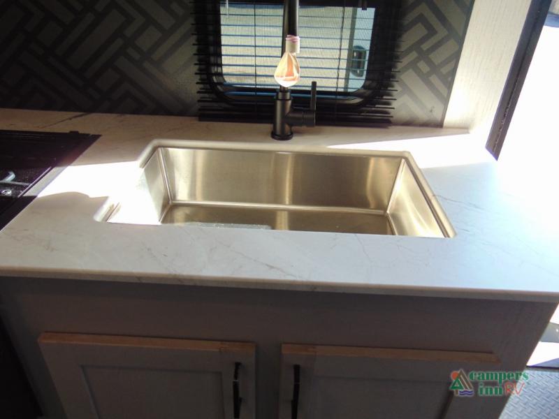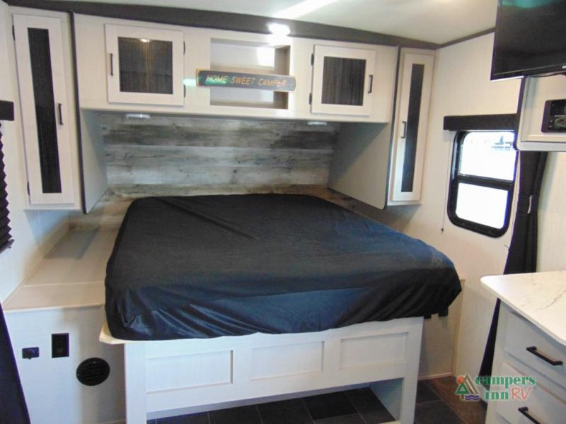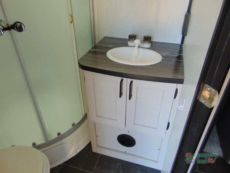The Heartland Mallard travel trailer is quite impressive with its innovative features! The flip-down exterior steps and glow-in-the-dark graphics are some of the top exterior features, and the all-new Master Chef kitchen with Infinity edge countertops and stainless steel undermount sink is one of the top interior features that will make camping life easier. The forced-air heated and enclosed underbelly is a great feature that protects your trailer from the outside weather, and the Wide Traxx axle system, leaf spring suspension, E-Z lube hubs, and aluminum rims all work together to give you a great ride to the campsite. The Mallard has also been prepped for a solar panel, Wi-Fi, and a back-up camera, and it also has a cable-ready hook-up.