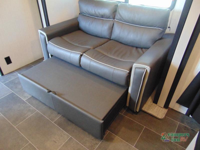 Grab a drink from the 8-cu. ft. refrigerator on your way out of this Mallard travel trailer to relax under the 12' power awning with LED lighting or take a walk around the campgrounds. You can easily grab your camp chairs from the pass-through storage if you hadn't already brought them out, and when you get back, be sure to stop at the full bathroom to get cleaned up before making lunch. You can then dine at the sofa slide with table, take a nap on the king bed, and do whatever is next on your camping list.