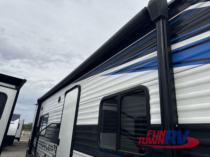 Get ready for comfortable and easy camping with the Prowler travel trailers by Heartland. These models feature durable construction with the performastructure aluminum front wall, the cambered structural steel I-beam frame, and the fully walkable roof. The MEGA bright pass-through storage features 52 cu. ft. of exterior storage with mega sized access doors, LED lights, and a finished interior to keep your gear secure. You'll fall in love with the at-home kitchen the includes Duralast countertops, a residential refrigerator, plus a stainless steel double bowl undermount sink for easy clean-up. These travel trailers also feature panoramic windows, an EZ clean interior, USB charging ports throughout, and many more comforts! Don't let the Prowler travel trailers slip away. Choose your favorite floorplan today!