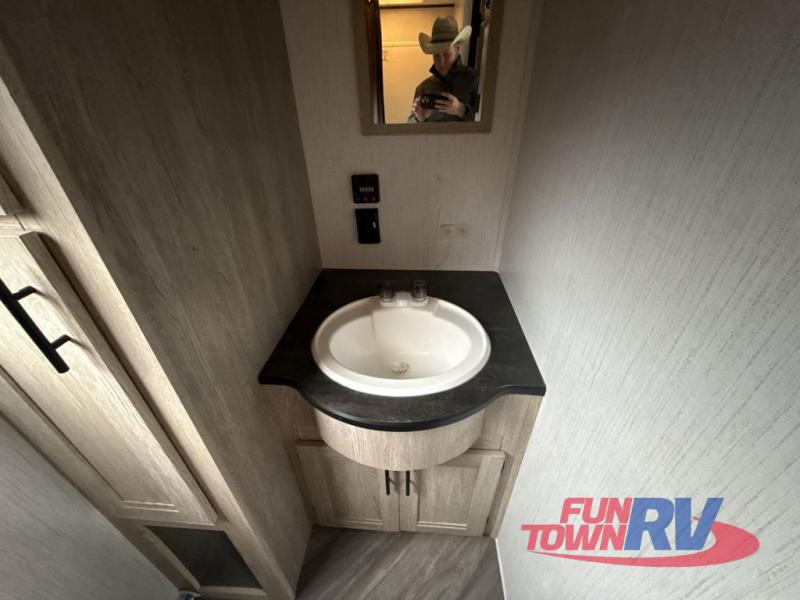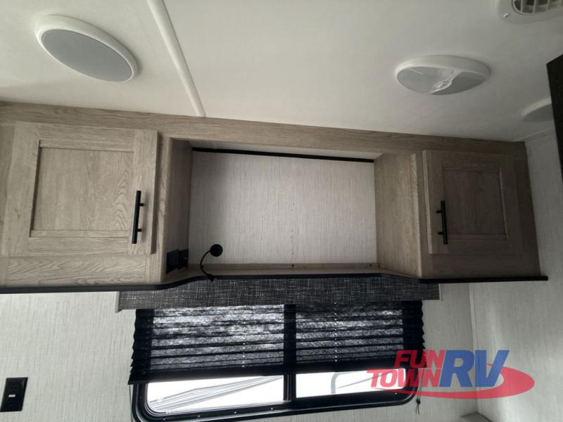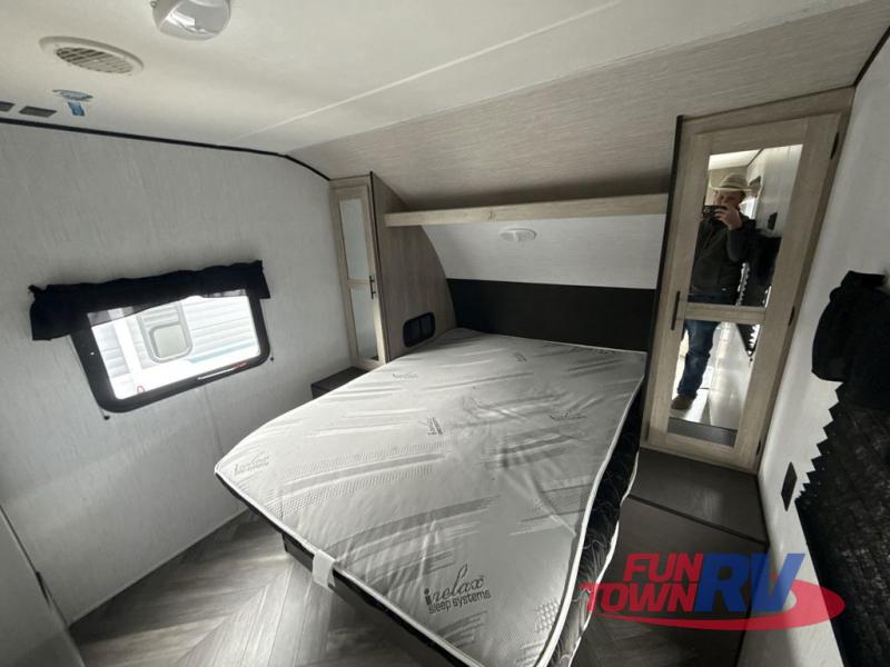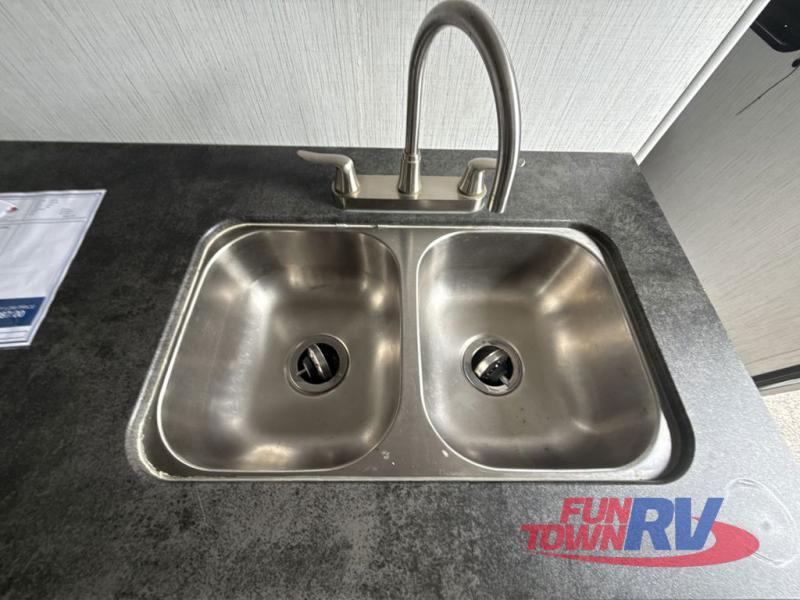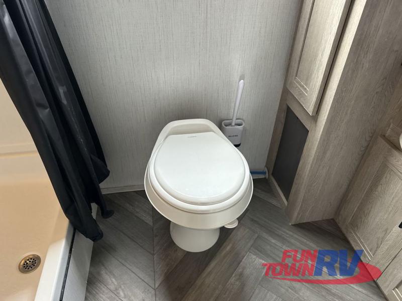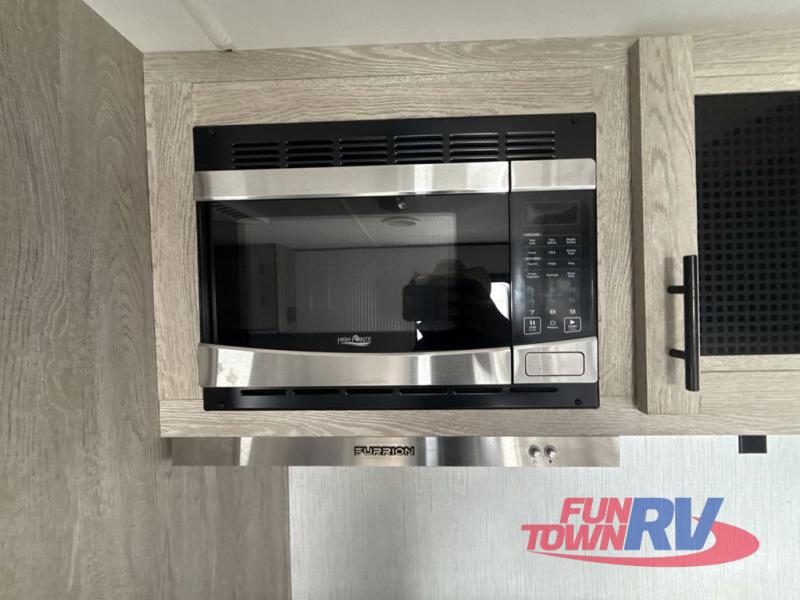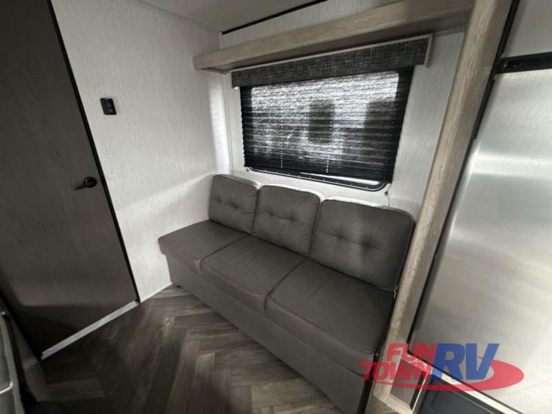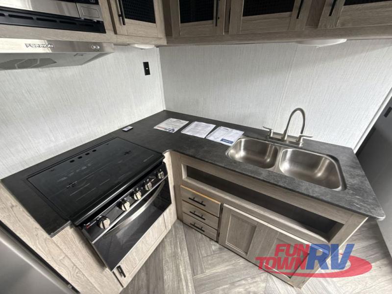 Head to the lake in this cozy travel trailer for four! The full rear bath will provide privacy everyone will appreciate, and the front private bedroom will feel just like home. This Prowler kitchen includes everything you need to prepare meals each day, including a three burner cooktop, a microwave oven, and a 10 cu. ft. 12V stainless steel refrigerator for leftovers. This model also includes a 14' power awning with LED lights for outdoor fun and relaxation!