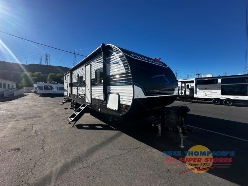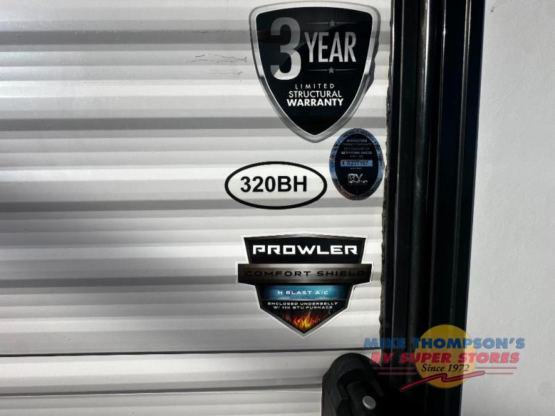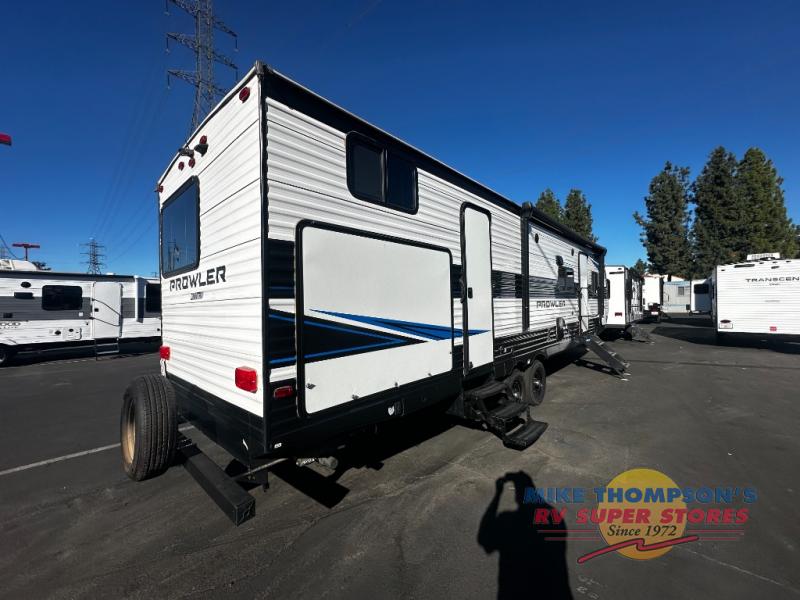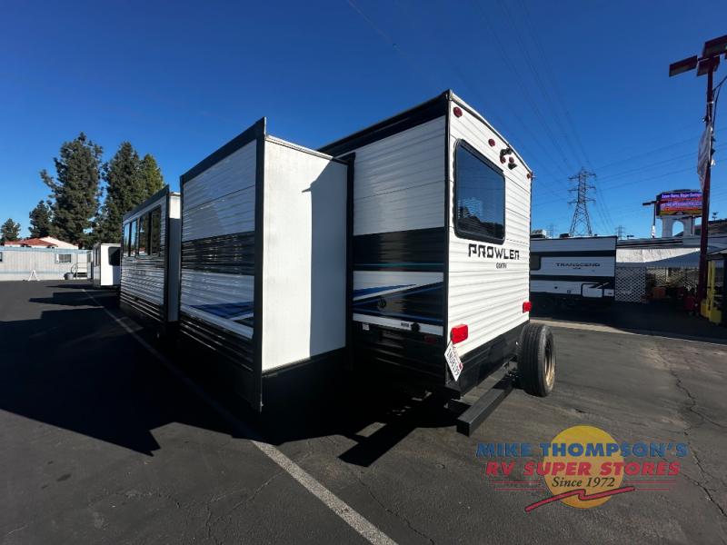 Get ready for comfortable and easy camping with the Prowler travel trailers by Heartland. These models feature durable construction with the performastructure aluminum front wall, the cambered structural steel I-beam frame, and the fully walkable roof. The MEGA bright pass-through storage features 52 cu. ft. of exterior storage with mega sized access doors, LED lights, and a finished interior to keep your gear secure. You'll fall in love with the at-home kitchen the includes Duralast countertops, a residential refrigerator, plus a stainless steel double bowl undermount sink for easy clean-up. These travel trailers also feature panoramic windows, an EZ clean interior, USB charging ports throughout, and many more comforts! Don't let the Prowler travel trailers slip away. Choose your favorite floorplan today!