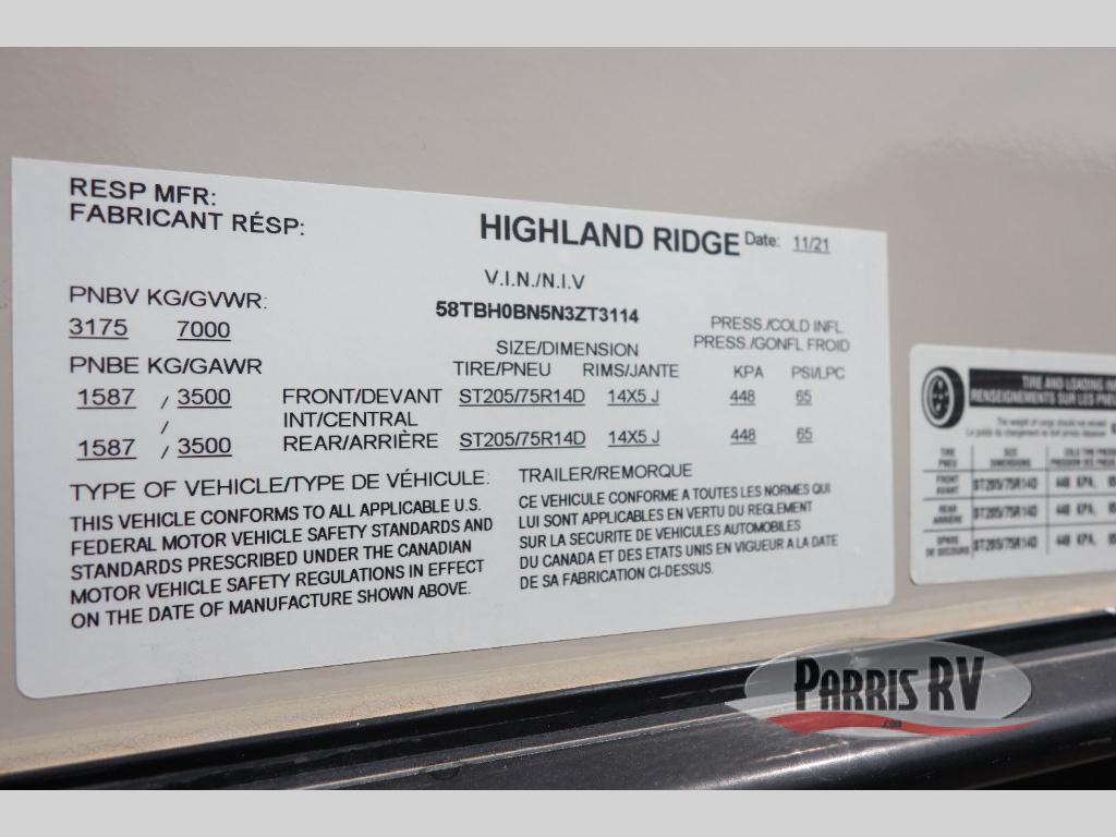 Start camping the convenient way in any one of these Highland Ridge RV Mesa Ridge S-Lite travel trailers! They are lightweight but still packed full with handy features and a sturdy construction with Tuffshell walls and a PVC roofing membrane. Their thermal seal consists of an enclosed and heated underbelly, as well as a fully insulated roof. The mandatory Customer Convenience package includes a roof mounted 15,000 BTU A/C unit to keep you cool on the hottest summer days, an AM/FM/HDMI/USB/AUX Bluetooth sound bar stereo with indoor/outdoor zoned speakers so you can crank up the tunes, and a dome style TV antenna with WiFi prep. You will also appreciate the kid and pet friendly vinyl flooring throughout, the laundry chute in the bedroom, and the electrical outlets and USB ports in the master bedroom to charge your electronics while you recharge too. Come find your favorite model today!