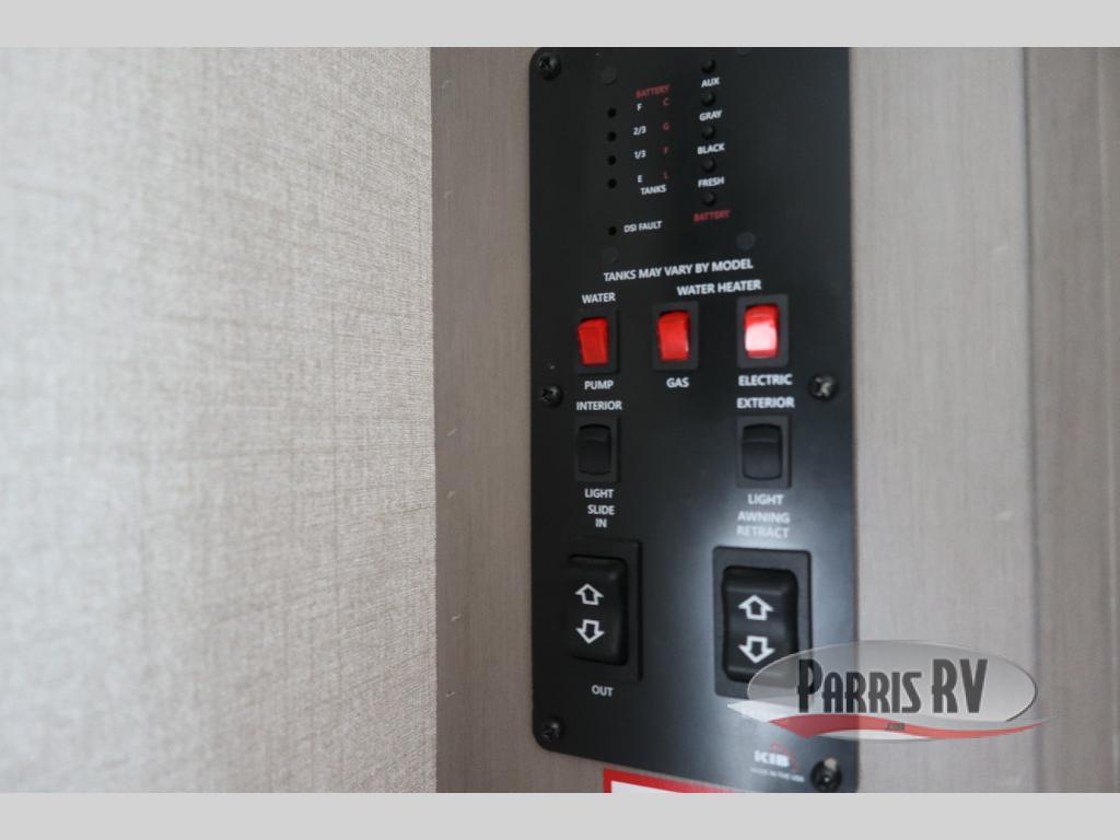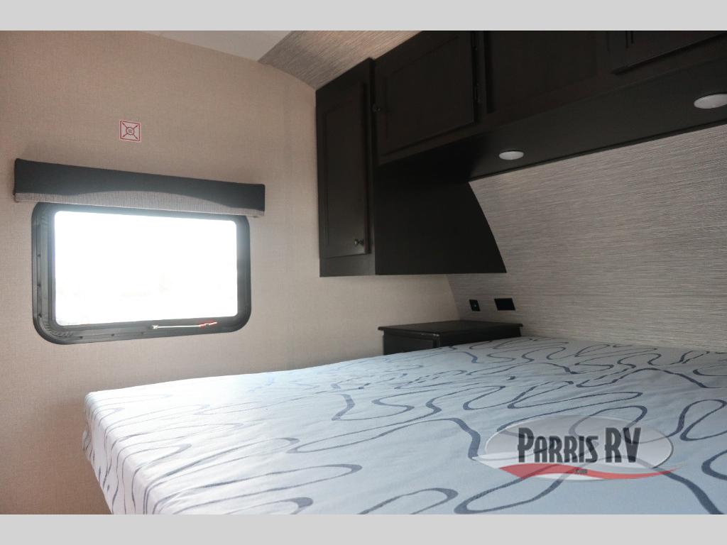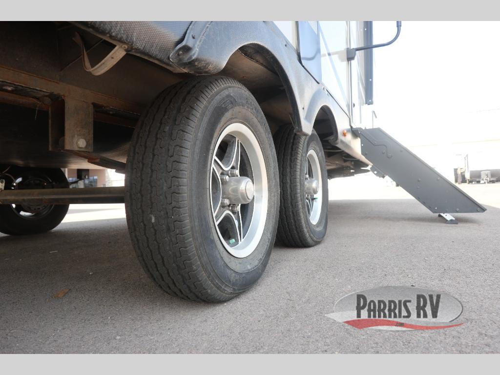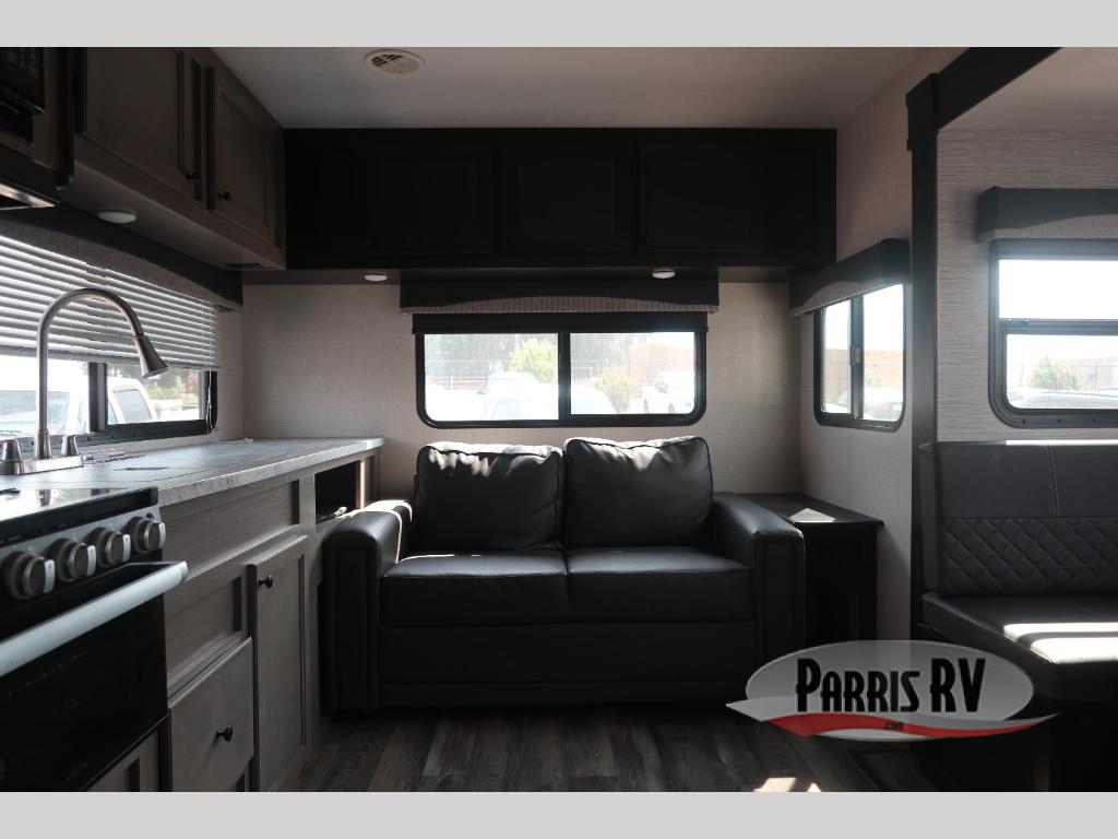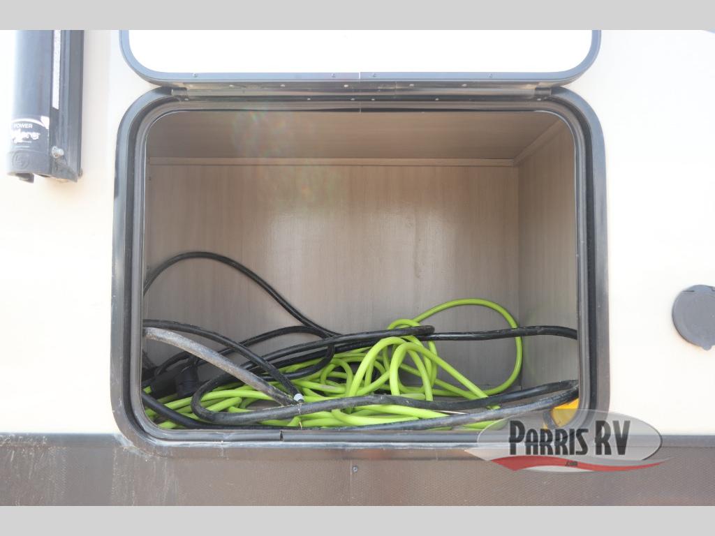 You will have everything you could need for a fun camping trip in this travel trailer! Inside the front private bedroom is a queen bed with drawers underneath for extra blankets, wardrobes on either side to keep your clothes out of the way, and an entrance into the dual entry bathroom. The booth dinette offers a comfortable place to enjoy your meals, play games, and even transform into an extra sleeping space. If mother nature is raining on your parade then head to the rear tri-fold sofa to watch a movie on the LED HDTV at the entertainment center!