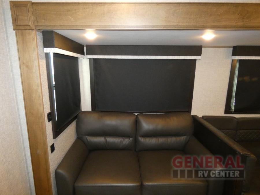 Experience a comfortable tow with every one of these Jayco Eagle HT fifth wheels and travel trailers! They are built with a Stronghold VBL aluminum frame, vacuum bond laminated gel-coated fiberglass exterior walls, and a Magnum Truss roof system with a one piece, seamless DiFlex II material that has been tested as the strongest roof in the industry. The HELIX cooling system comes with an exterior mounted 15,000 BTU "Whisper Quiet" A/C unit, Jayco exclusive insulated dual duct design, directional and closeable A/C vents, and larger air vents with user accessible filters so you can stay cool even on the hottest summer day. With a mandatory Luxury package, you will get handy features like the JAYCOMMAND smart RV system to control your unit at the touch of a finger, an electric auto-leveling so you can set up quick and easy, and blackout roller shades for added privacy. Come find the right one for you today!
