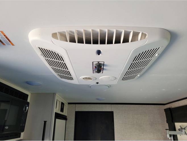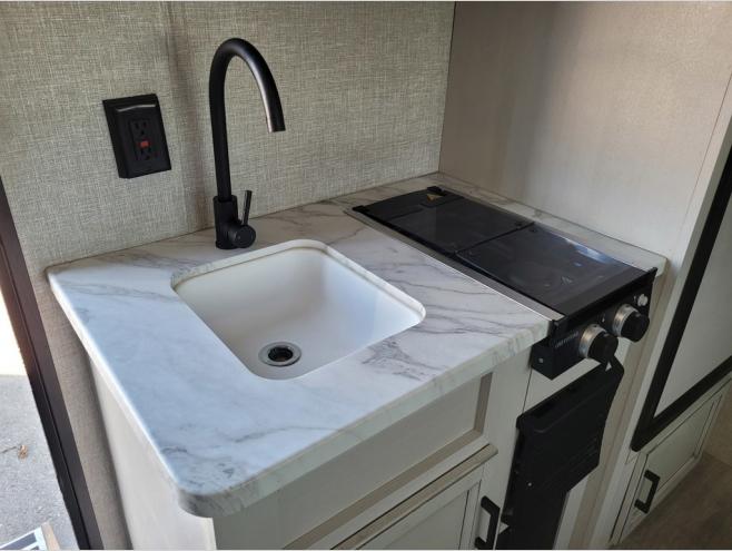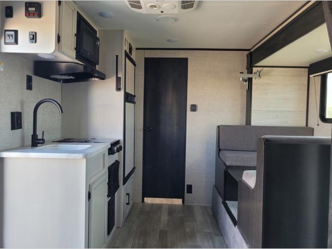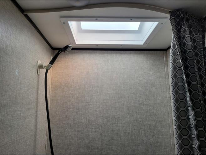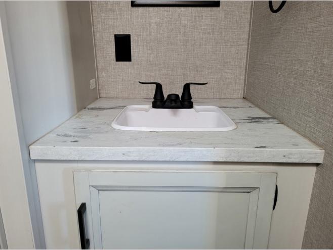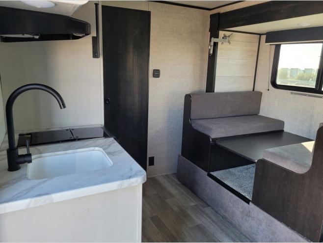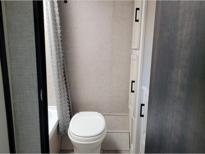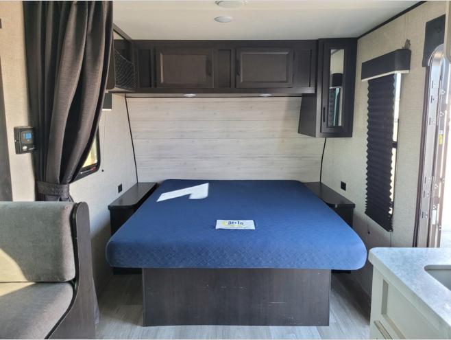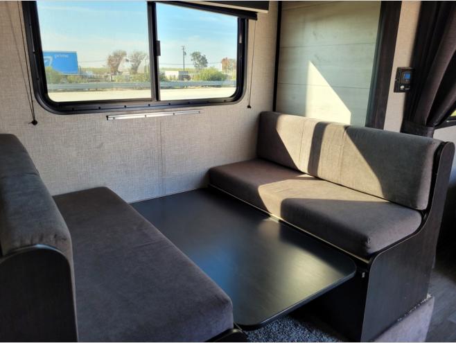 When you are ready to explore nature, take this trailer with you to your favorite campsite! You can easily setup the dinette slide out and the 10' power awning, then head out for a hike, visit with other RVers, and/or relax at the dinette or on the queen bed up front. If you want to take a nap, close the curtain for privacy. When you are hungry, whip up a snack or meal using the range and microwave, and the 6 cu. ft. refrigerator will hold your cold items. And the rear full bathroom along the rear is spacious and includes linen storage.