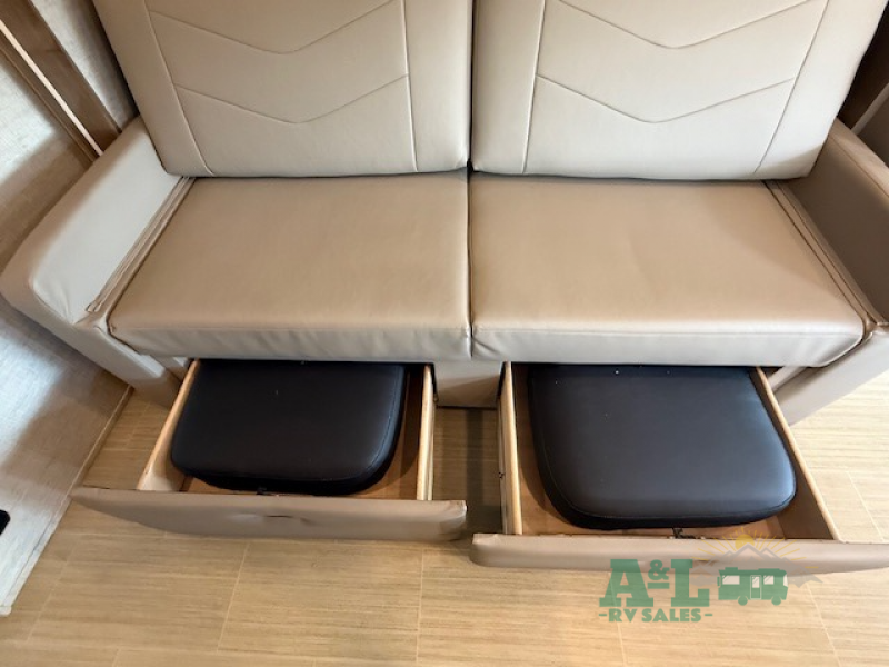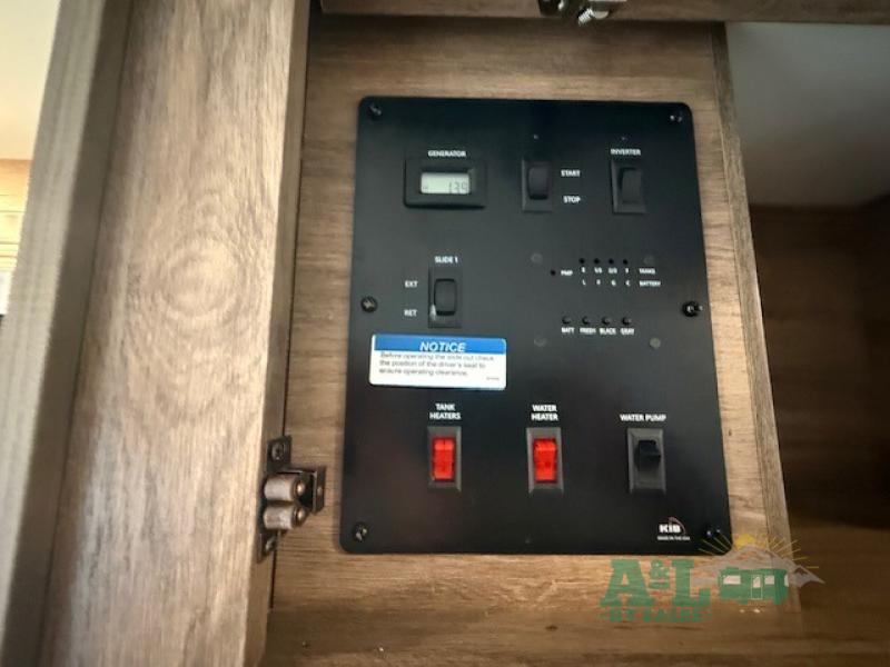 Pack up and head to the antique show for the weekend in this versatile coach. There is a sofa within the full-wall slide that includes a queen Murphy bed to sleep on a night, and if you have any friends tag along they can sleep on the booth dinette or cab-over bunk. The full rear bath includes a 24" x 32" shower, a stainless steel sink, plus a large bath wardrobe to store clean towels and toiletries. Head to the kitchen to prepare lunch on the Suburban two burner drop-in cooktop, and you'll appreciate the large pantry for dry goods and snacks. You can choose the optional theater seating in place of the booth dinette, or the optional front entertainment center in place of the cab-over bunk if you're not needing the additional sleeping space.