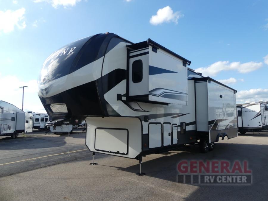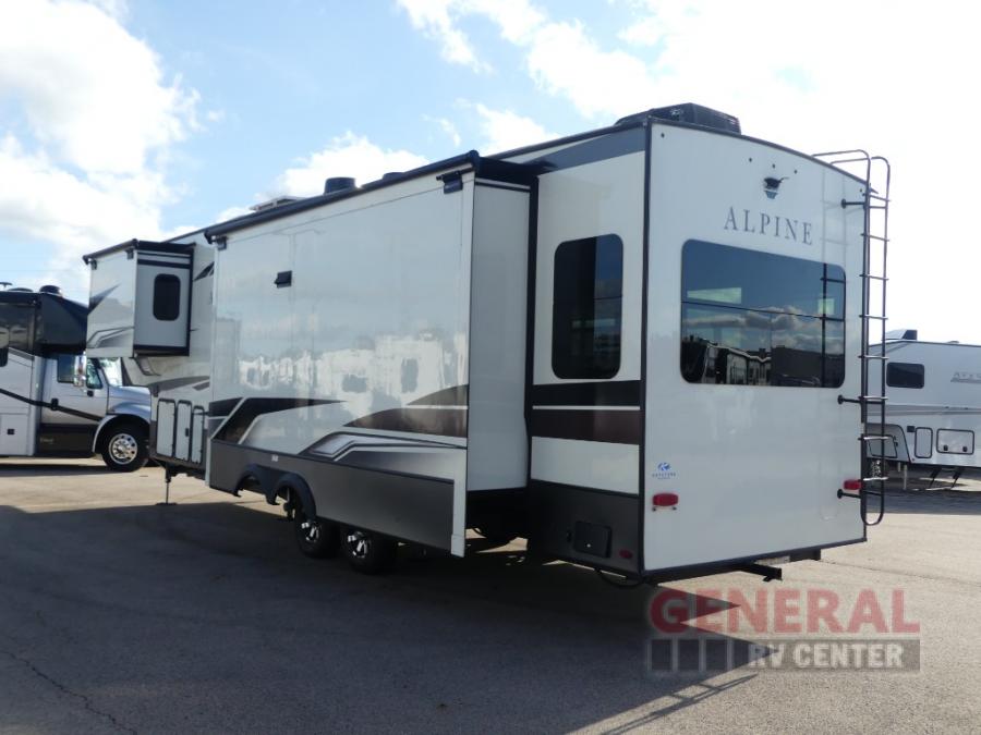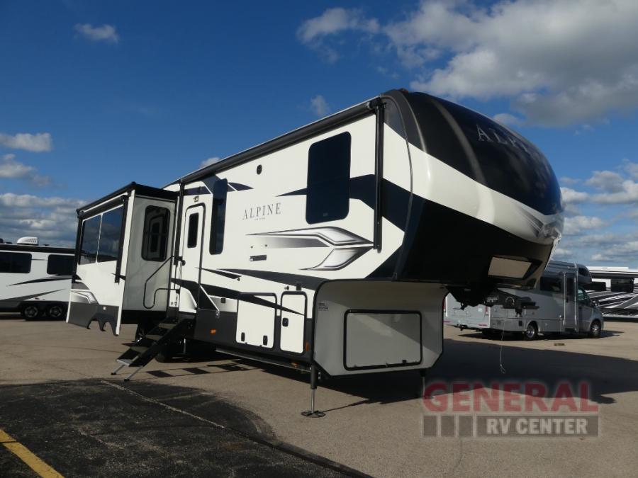 Luxury is not an option, it is a standard with each one of these Keystone RV Alpine fifth wheels! A 100" wide body construction, almost 7' tall slides, high ceilings, and panoramic frameless windows create an open, residential feeling. The Tru-Fit slide construction is more durable and minimizes motor structural stress, as well as resists leaking. Exclusive 12V color-coded wiring is different from conventional RV wiring in that it is easy to trace and clearly labeled to help savvy owners with DIY diagnosis/repair and helps dealer service techs troubleshoot/repair quickly which saves you time and money. The in-floor heat vents run straight through the unit and are typically positioned in low-traffic areas just like in your home for a more efficient air flow, plus it helps to keep the cabinet storage space. Come find your favorite model today!