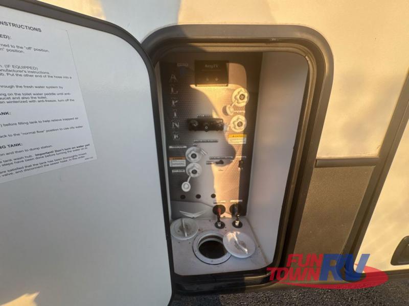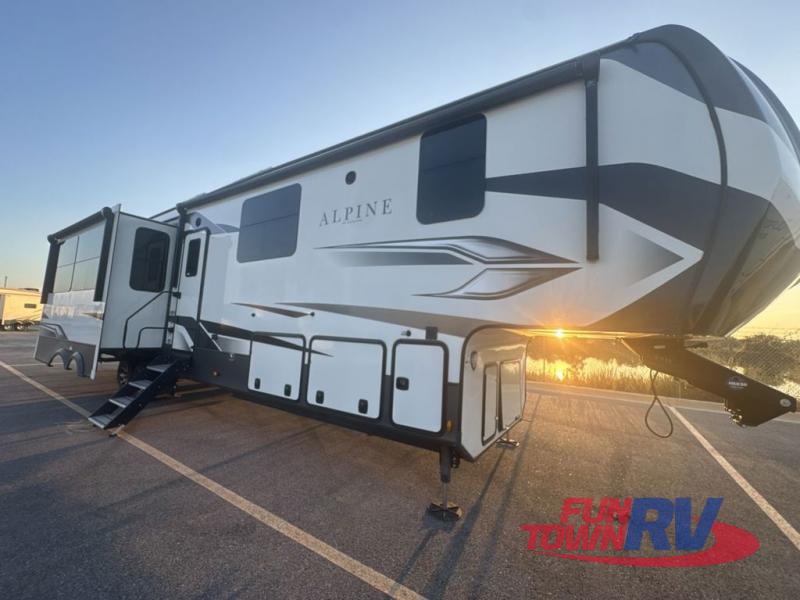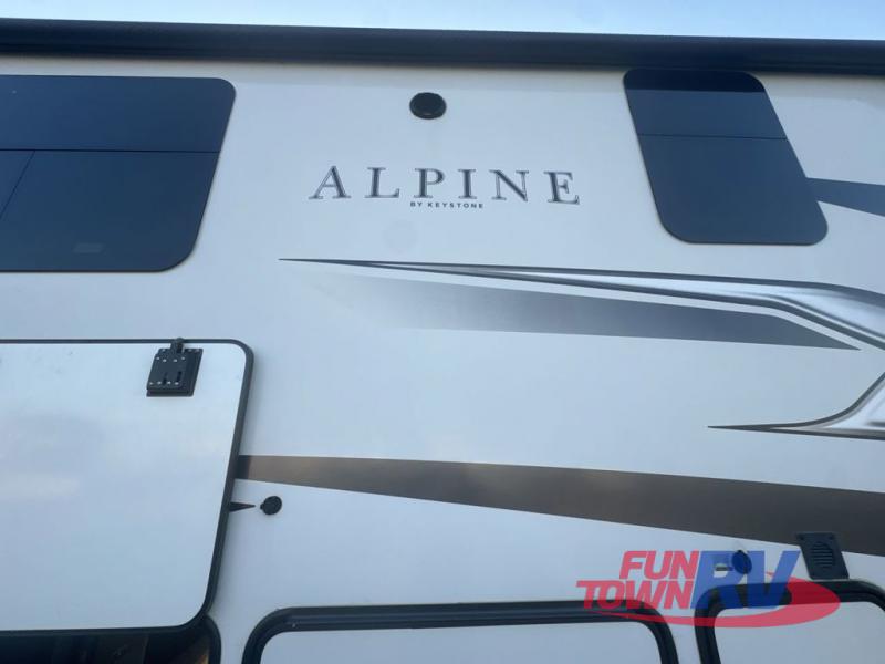 Luxury is not an option, it is a standard with each one of these Keystone RV Alpine fifth wheels! A 100" wide body construction, almost 7' tall slides, high ceilings, and panoramic frameless windows create an open, residential feeling. The Tru-Fit slide construction is more durable and minimizes motor structural stress, as well as resists leaking. Exclusive 12V color-coded wiring is different from conventional RV wiring in that it is easy to trace and clearly labeled to help savvy owners with DIY diagnosis/repair and helps dealer service techs troubleshoot/repair quickly which saves you time and money. The in-floor heat vents run straight through the unit and are typically positioned in low-traffic areas just like in your home for a more efficient air flow, plus it helps to keep the cabinet storage space. Come find your favorite model today!