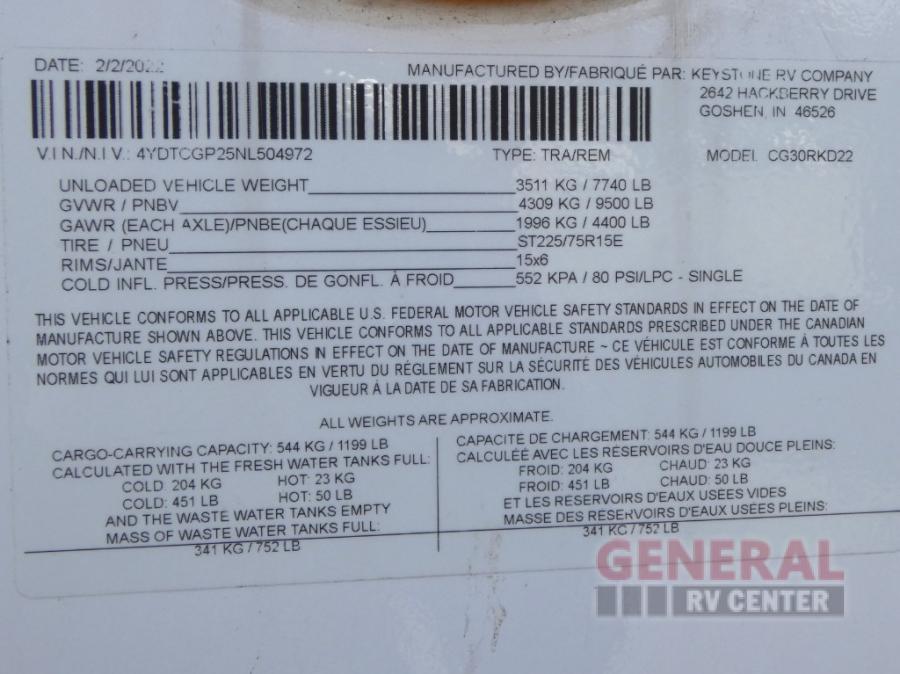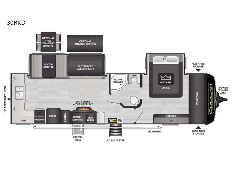 Keystone Cougar Half-Ton travel trailer 30RKD highlights: