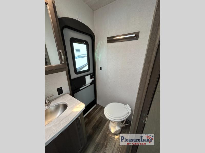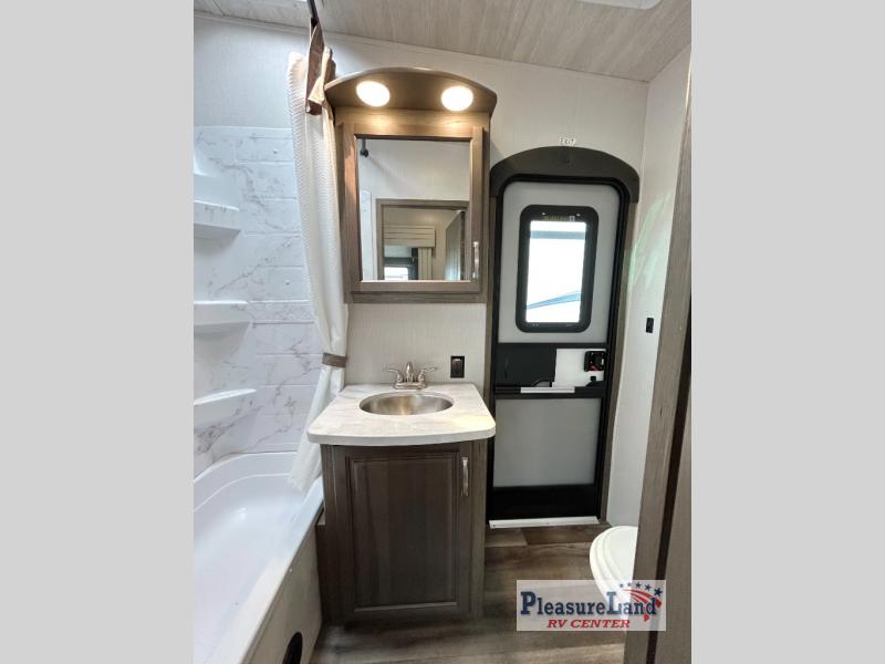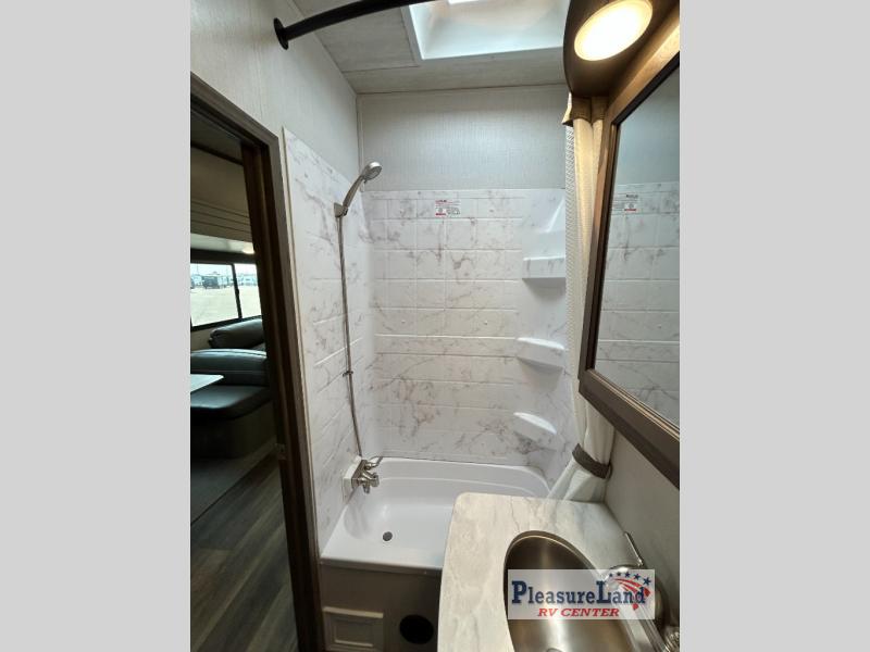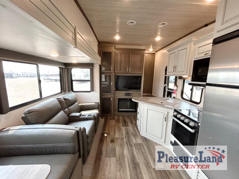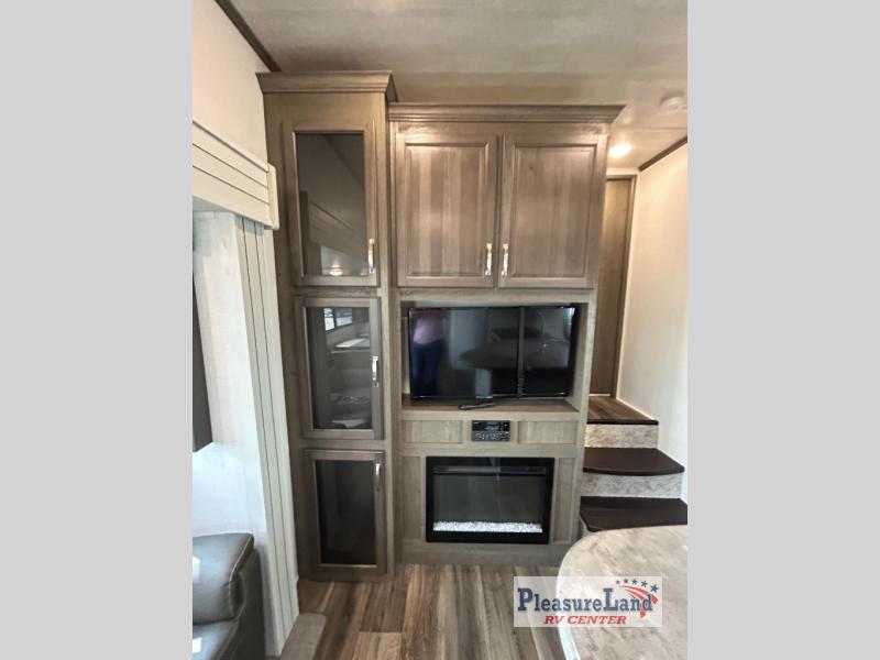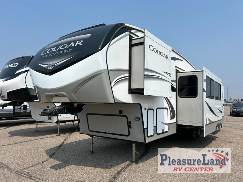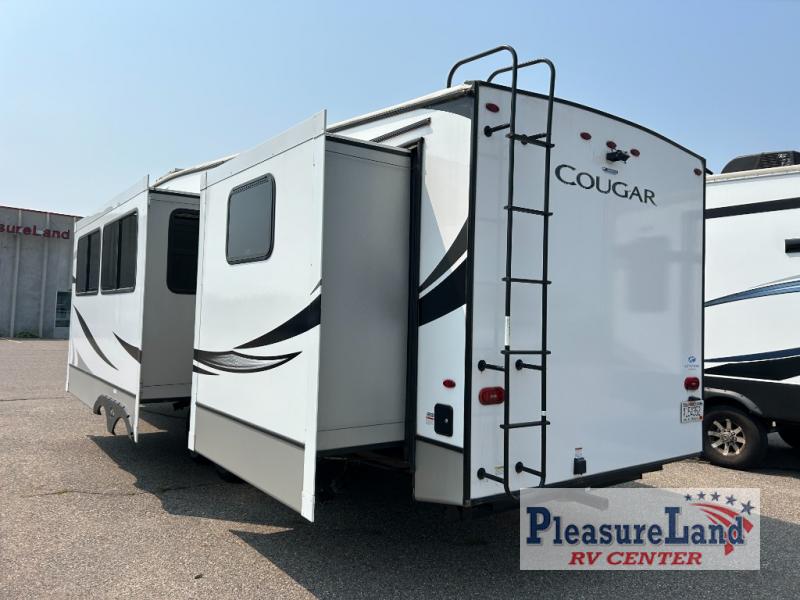 You won't have any trouble convincing your friends or family to join you on an adventure with this Cougar Half-Ton fifth wheel! Since this unit has both a full and a half bathroom, it will be easy for everyone to get ready in the morning, and the 21" Furrion range will allow you to whip up a full batch of pancakes for your guests. Store any leftovers in the 8-cubic foot refrigerator before heading out on your next exciting expedition. If you need your backpacks and hiking gear, you can grab them from the exterior pass-through storage, and you can create a cozy living area by adding the optional fireplace.