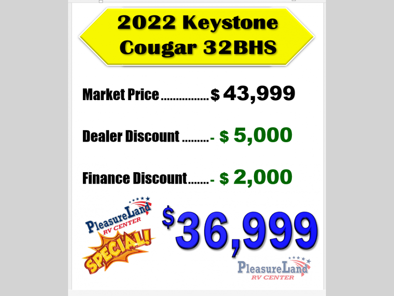 Keystone Cougar Half-Ton fifth wheel 32BHS highlights: