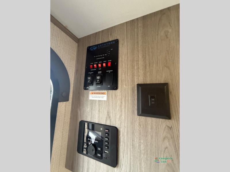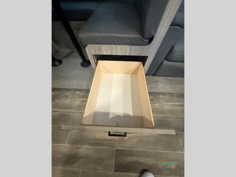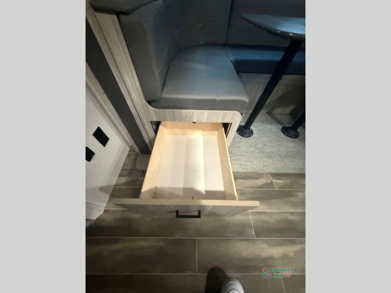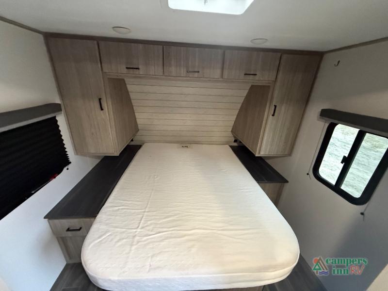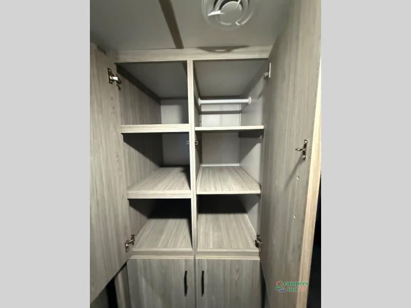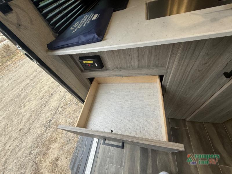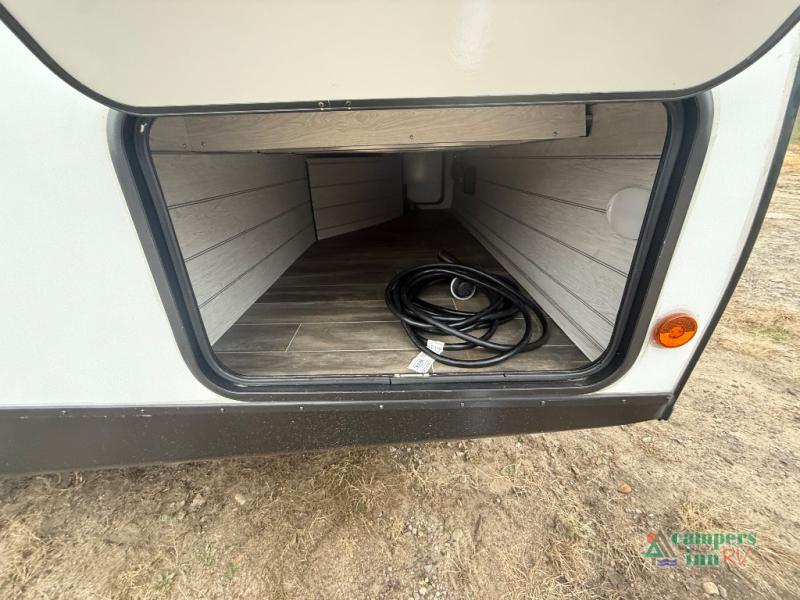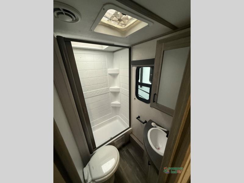 The Passport SL travel trailers by Keystone RV come in a compact design with travel-friendly lengths that are lightweight and easy to tow behind many smaller crossover SUVs. You will find several residential-style features such as durable Armstrong vinyl flooring, upgraded window treatments and valances, and bathroom countertops. The exterior shower with hot and cold water is very useful as you get cleaned up before entering the RV, wash your pets, or even rinse a few dishes outside. The Passport also now contains a HyperDeck flooring system which is a high-performance, water-resistant RV floor that comes as a breakthrough design from the Keystone Innovation Lab. This flooring is more resilient, stronger, and lighter than traditional laminated wood construction.