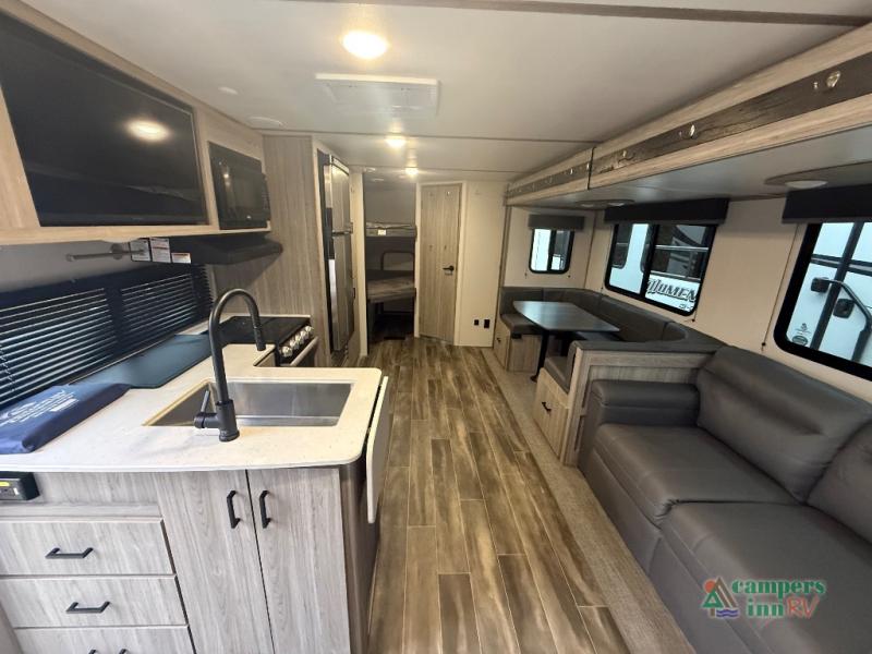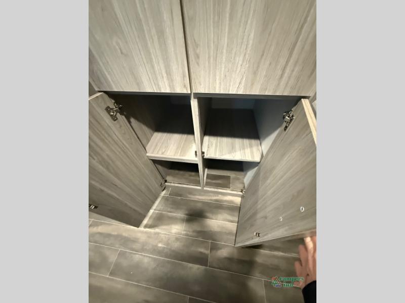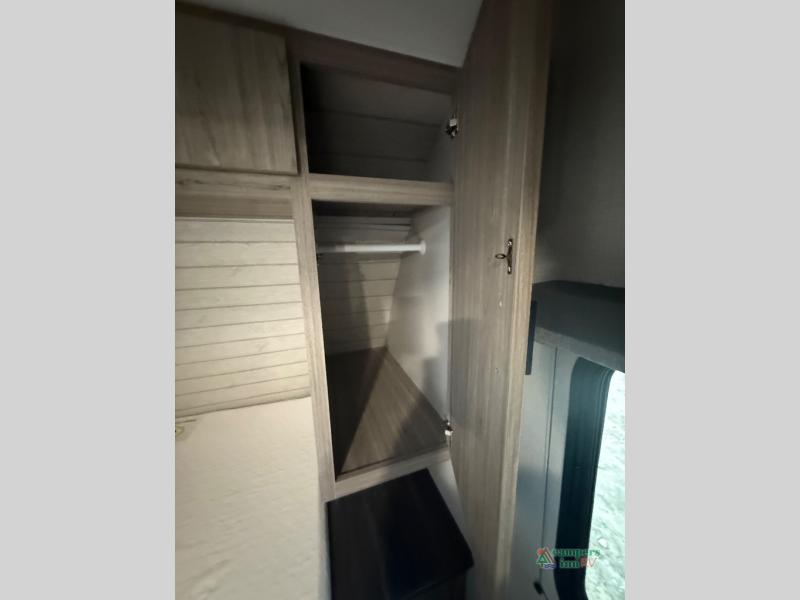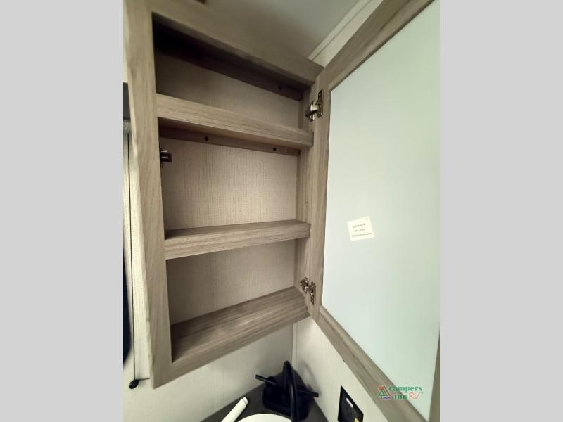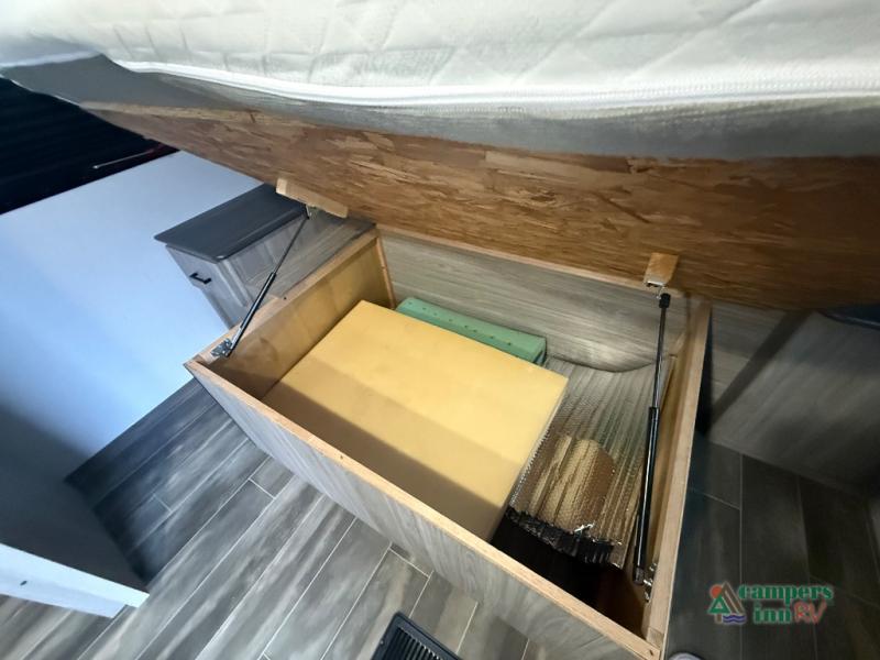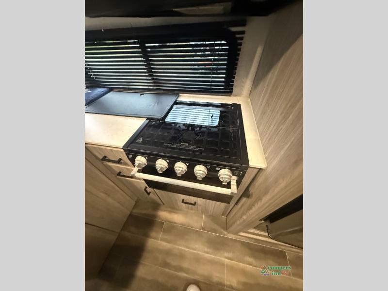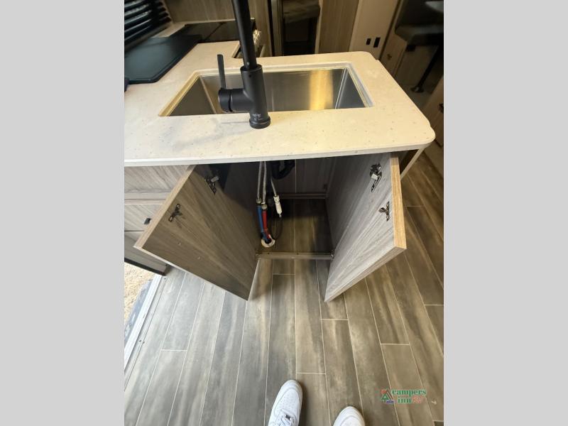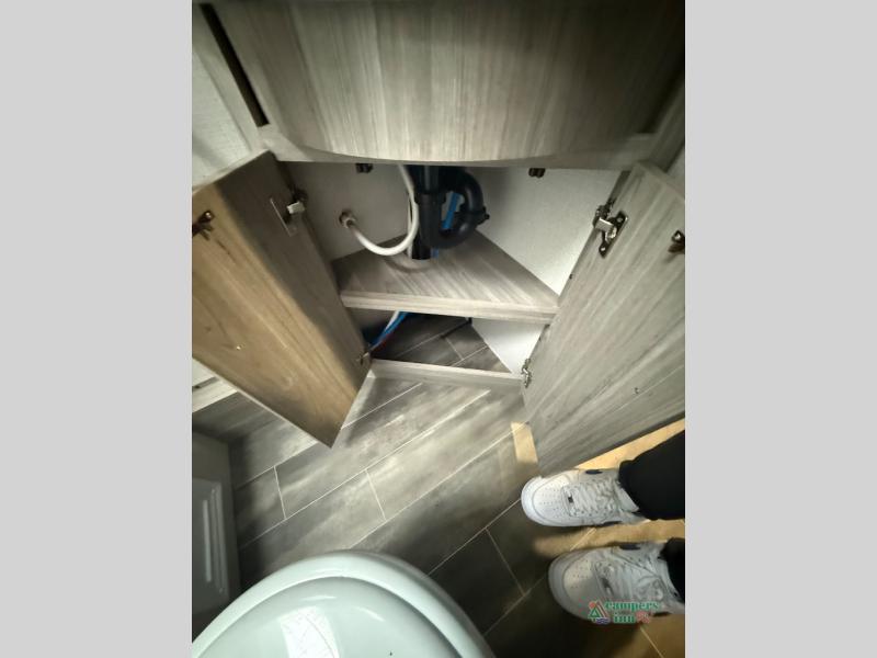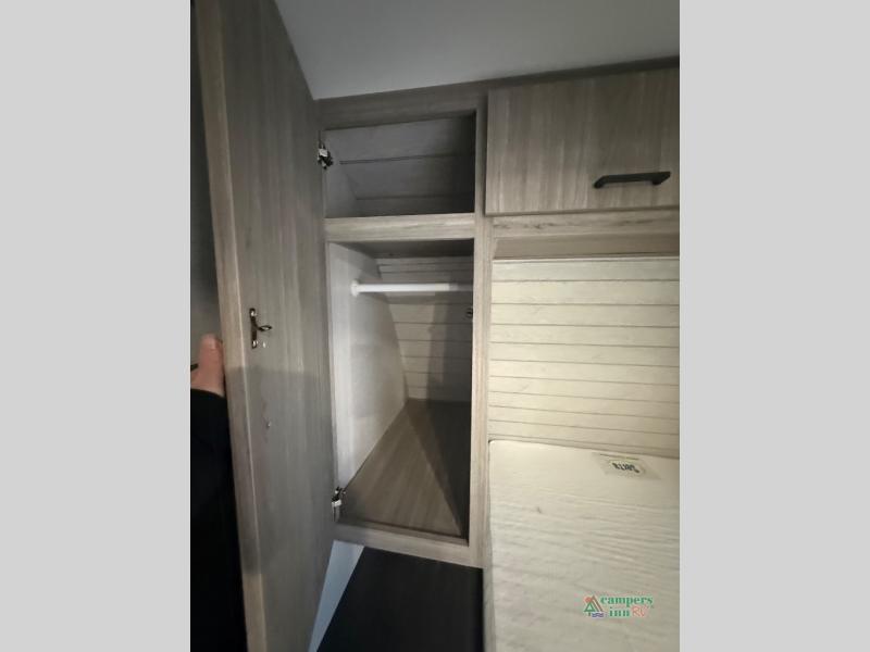 The Passport SL travel trailers by Keystone RV come in a compact design with travel-friendly lengths that are lightweight and easy to tow behind many smaller crossover SUVs. You will find several residential-style features such as durable Armstrong vinyl flooring, upgraded window treatments and valances, and bathroom countertops. The exterior shower with hot and cold water is very useful as you get cleaned up before entering the RV, wash your pets, or even rinse a few dishes outside. The Passport also now contains a HyperDeck flooring system which is a high-performance, water-resistant RV floor that comes as a breakthrough design from the Keystone Innovation Lab. This flooring is more resilient, stronger, and lighter than traditional laminated wood construction.
