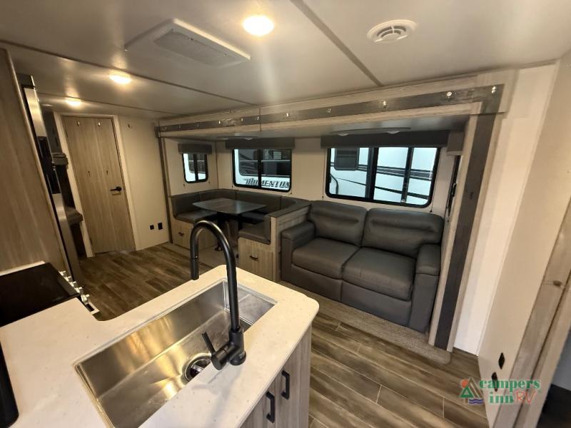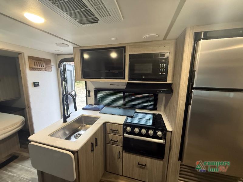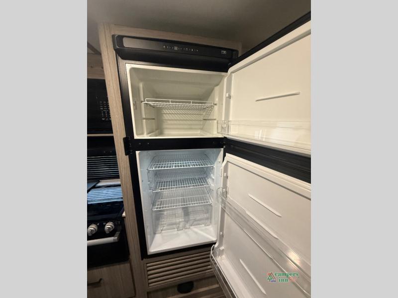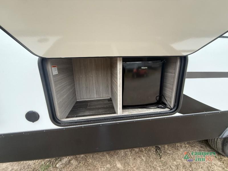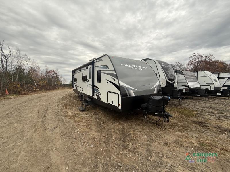 Let your days turn into weeks and your weeks turn into months with this Passport SL travel trailer! You can keep all of your gear stored effortlessly in the rear cargo door and the front pass-through storage compartment, and the interior also offers some storage space with the bedside wardrobes and large kitchen pantry or utilize this space as a wardrobe. You also have plenty of space to keep your perishable foods from spoiling with the interior 8-cubic foot refrigerator and in the exterior refrigerator in the outside kitchen. The tri-fold sofa sleeper and U-shaped dinette will provide you with some extra sleeping space so that you can invite friends or family to join you, and the full bathroom is going to keep everyone clean. You can also choose to add the optional Pivot furniture in place of the dinette and sofa or optional theater seats.