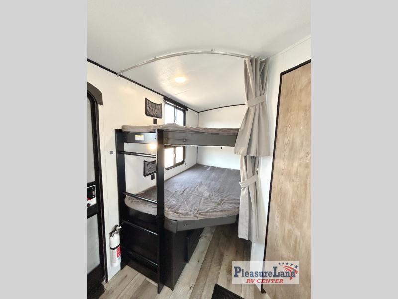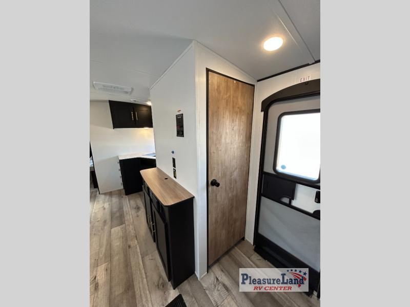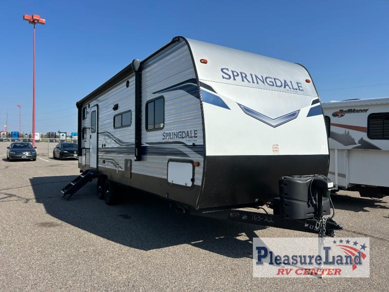 Make your camping dreams come true with this Springdale travel trailer! You are going to love how accommodating this trailer is for bedtime with its private bedroom with a queen bed and storage, double-size bunks on the opposite side of the trailer, and U-shaped dinette in the main living area. Across from the dinette, you will see an entertainment center to be used on a rainy day when you add the optional TV, and the full bathroom in the rear corner will allow all of you to stay clean without having to leave the trailer. You will also find the walk-in pantry to be extremely useful for storing all of your snacks and items that can be easily accessed by the entry door, and the kitchen offers everything you will need to keep everyone fed.