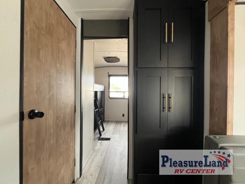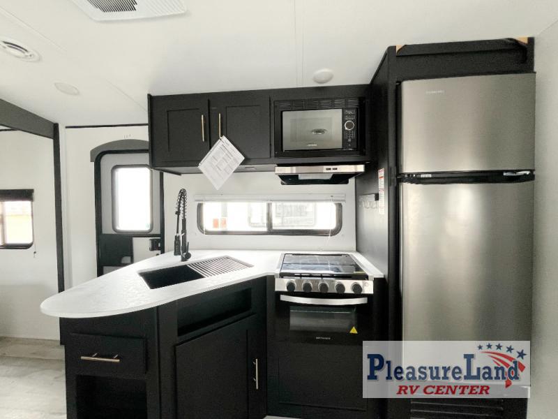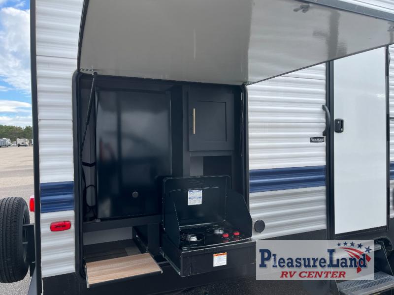 Lots of space, a bunkhouse for the kids or your friends, an interior kitchen and an outdoor kitchen for the chef in the family, two entry doors, and so much more makes this Keystone Springdale travel trailer perfect for a larger family or group of friends to enjoy. The perfect feature for those who love cooking and dining outside is the outdoor kitchen. The second exterior entry makes accessing the bath easy from the outside, and the private bunkhouse features a flip-up bunk above a Fun Lounger, as well as another bunk above an entertainment center on the opposite side. And in the private front bedroom, you can enjoy a bit of seclusion from the rest of the trailer and get a great night's sleep.
